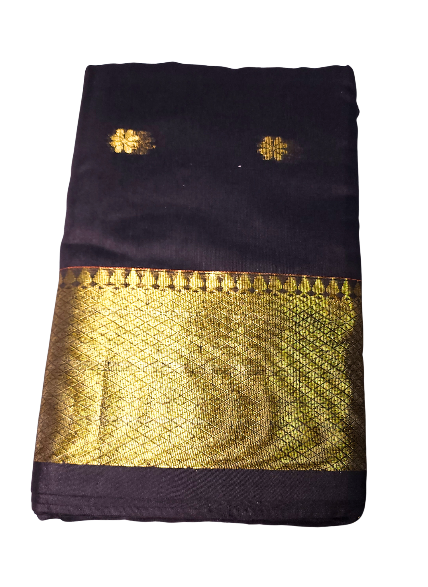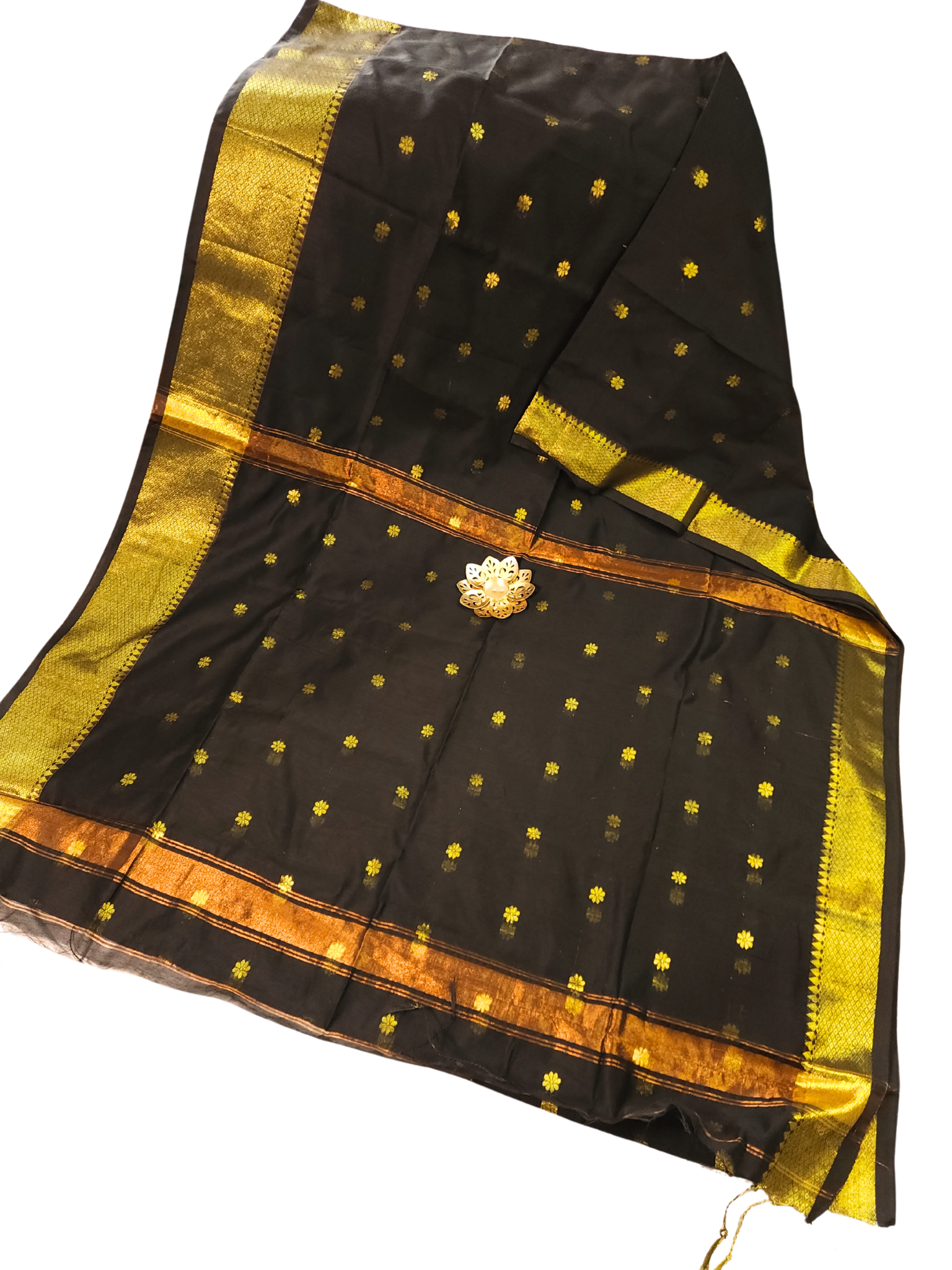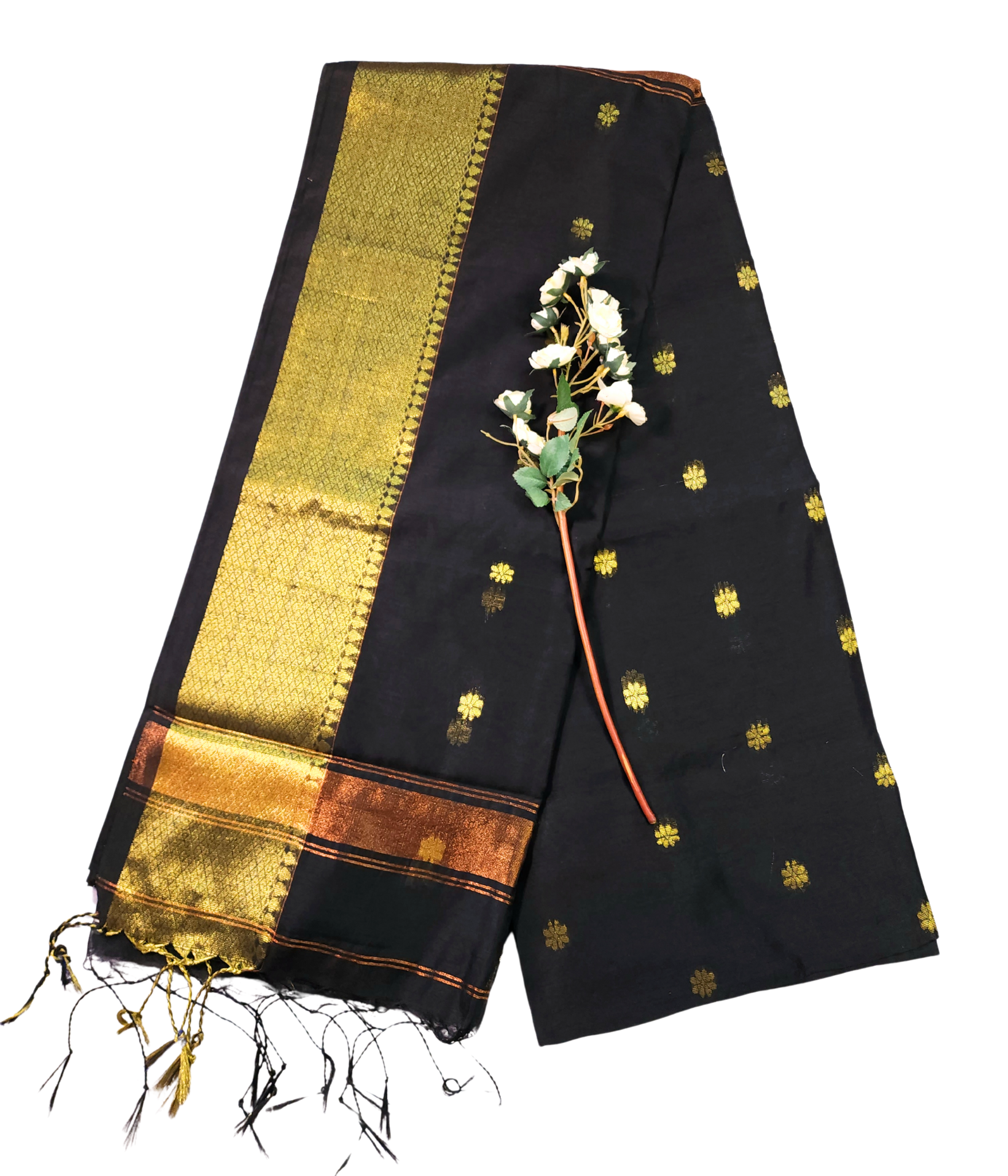 Black | Maheshwari Cotton Silk Handloom Saree with Golden Zari Border