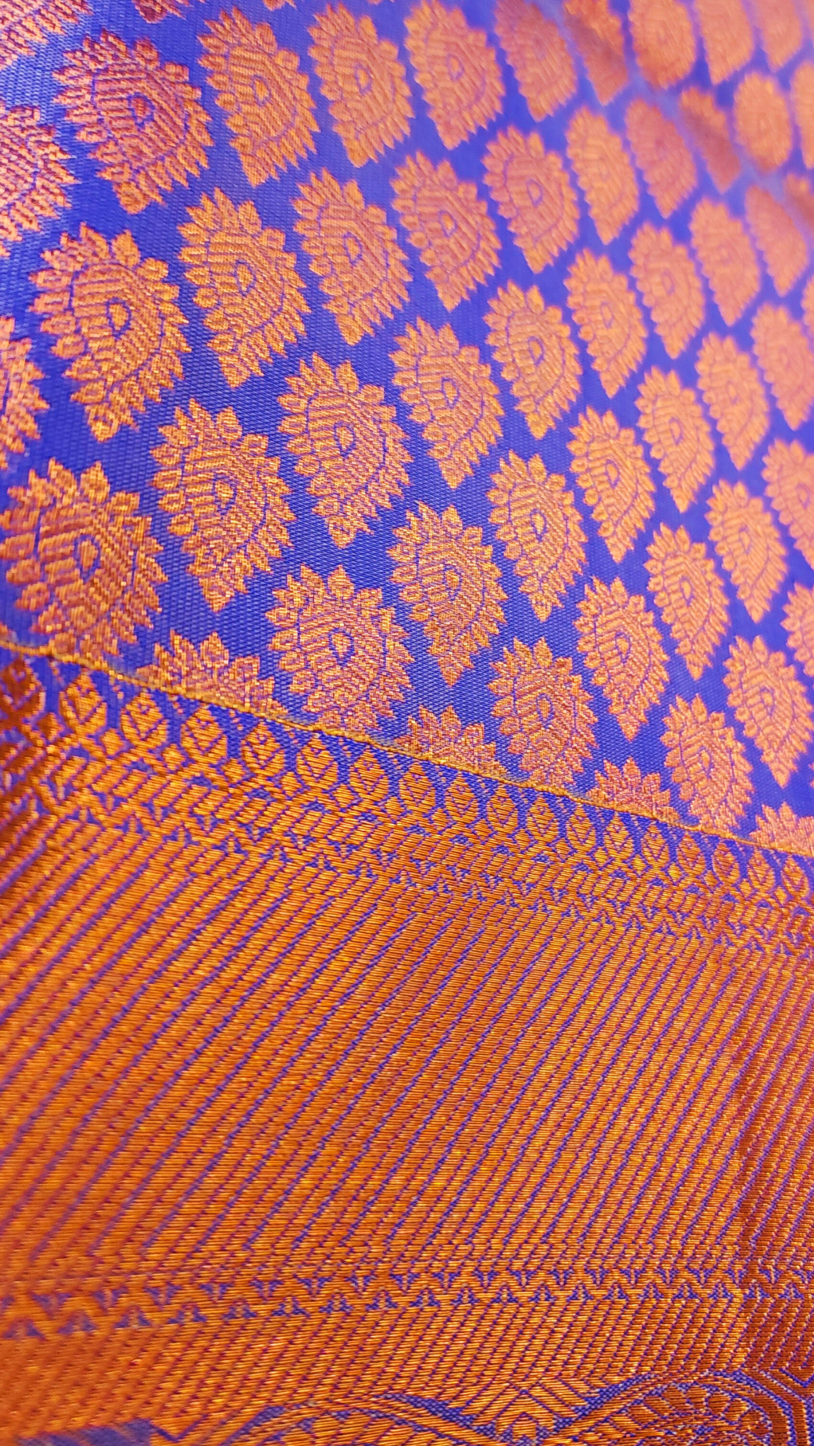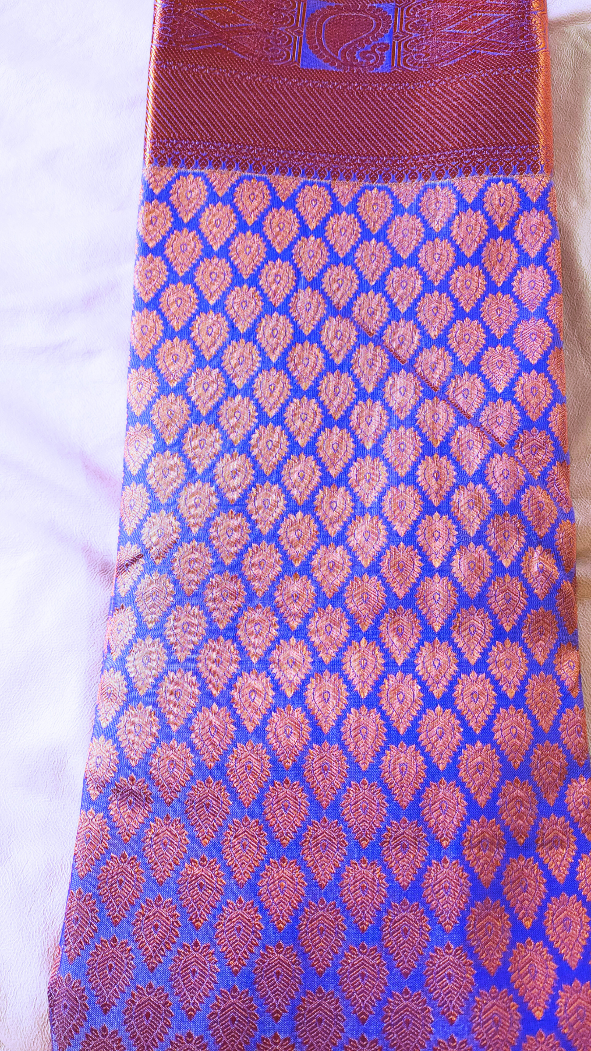 Blue | Brocade Dual Tone Silk Saree with Copper Zari Work