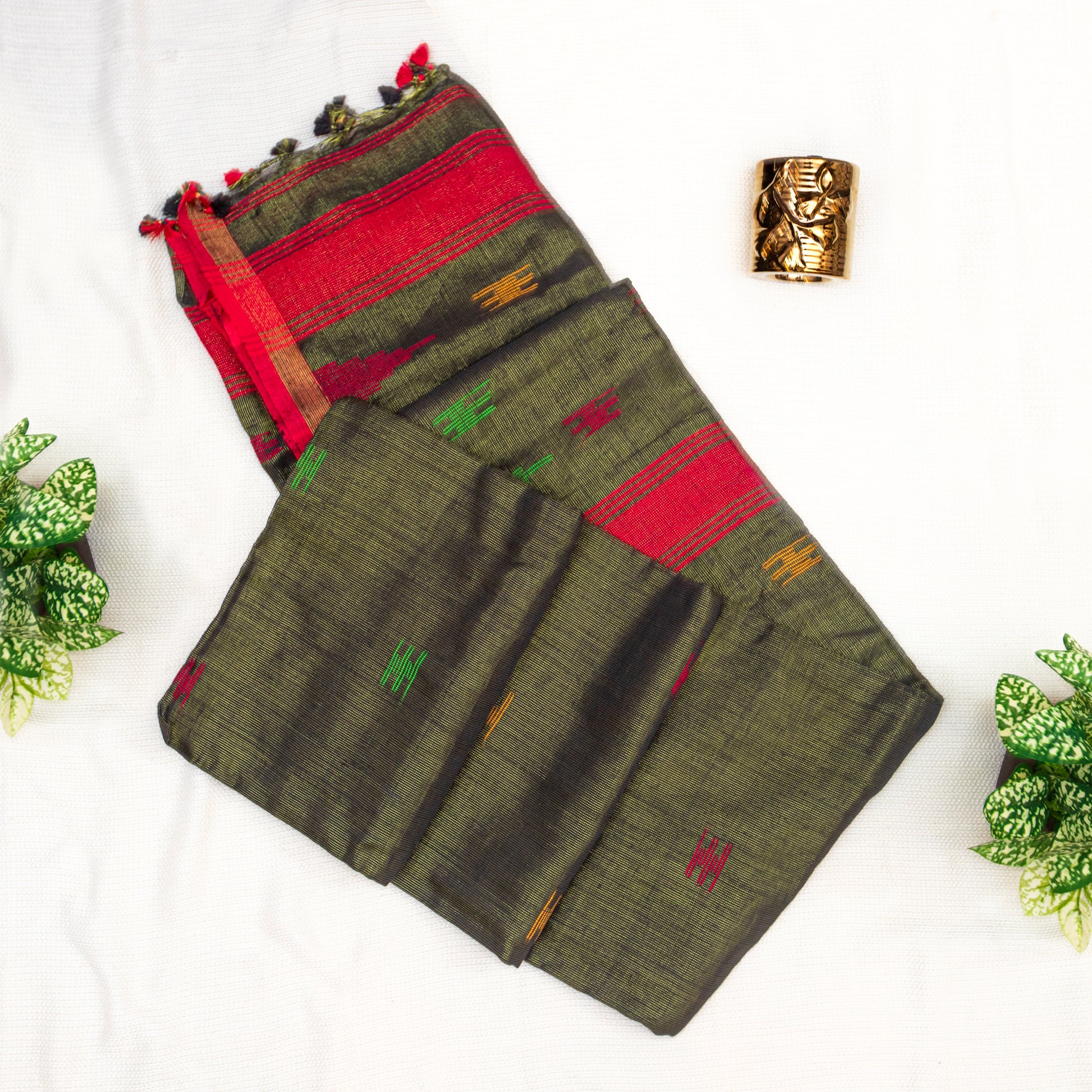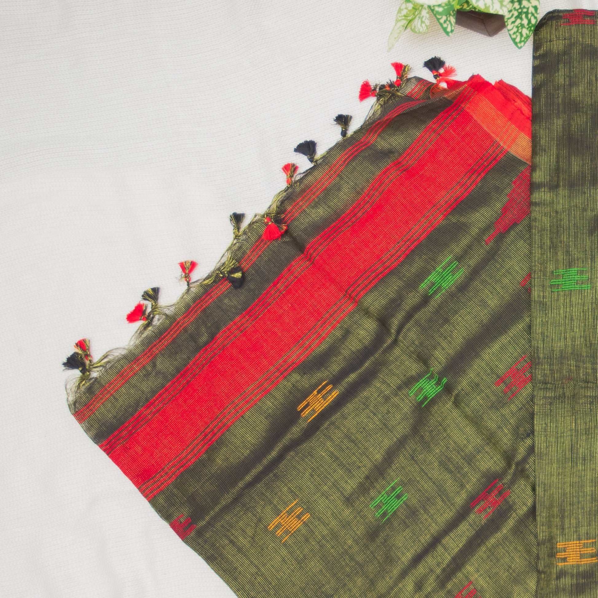 Bottle Green | Tissue Cotton Jamdani Handloom Saree