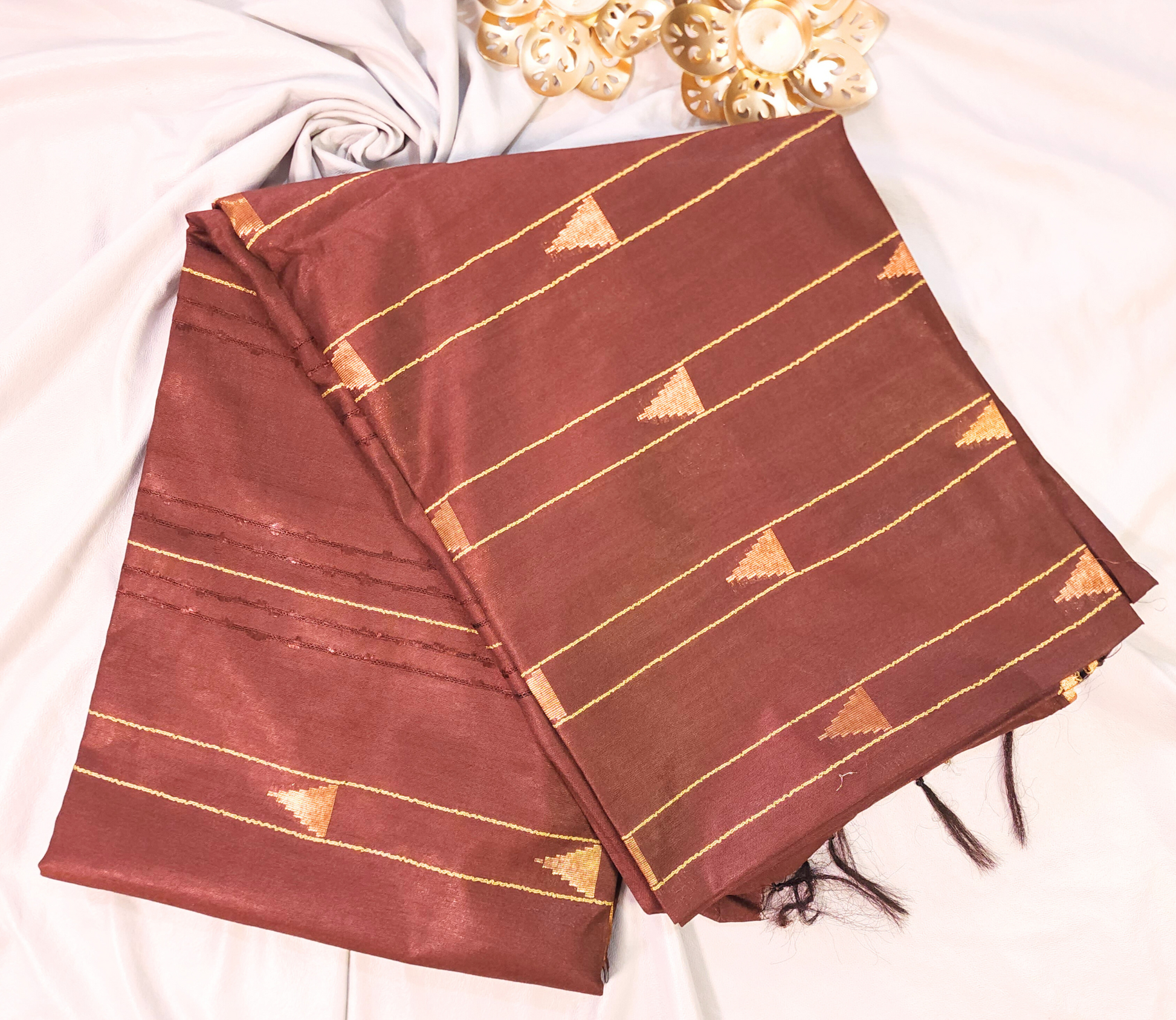 Brown | Soft Linen Saree with Woven Zari Temple Buti