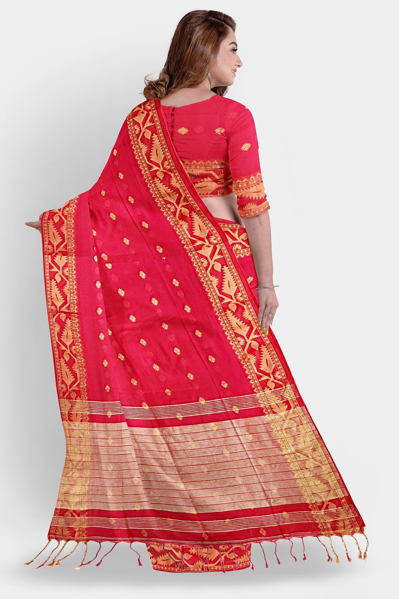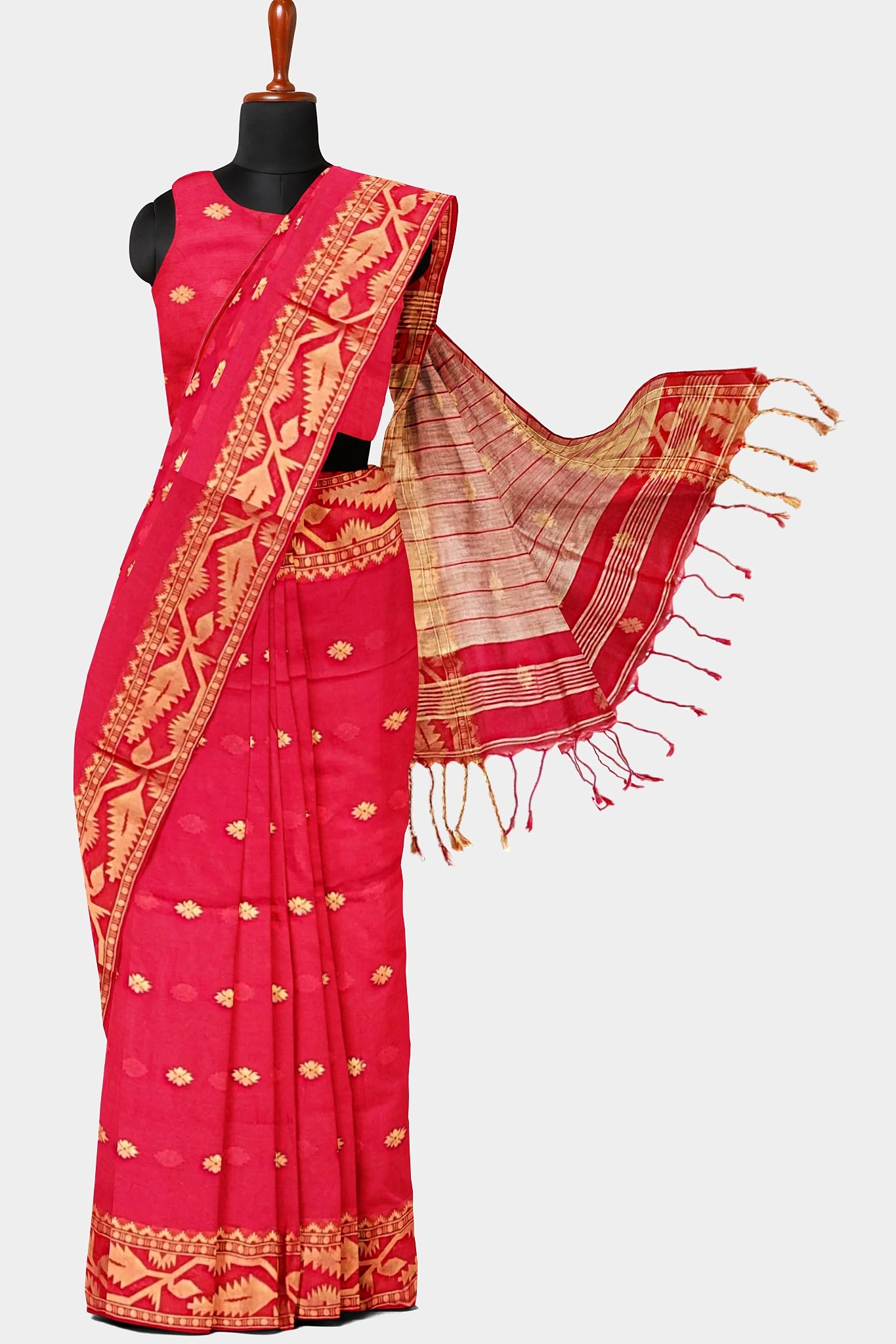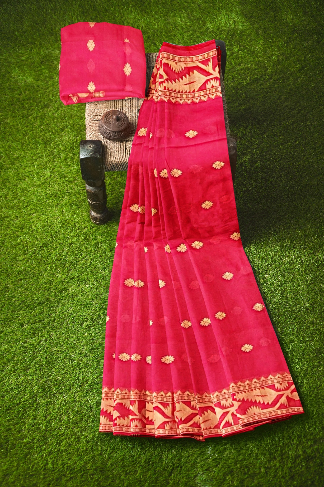 Elevate your elegance with our exquisite Cotton Handloom Saree adorned with delicate buttis. Crafted to perfection, this saree combines traditional artistry with modern charm. The intricate buta work adds a touch of sophistication, creating a harmonious blend of culture and style. Wrap yourself in the comfort of breathable cotton. Perfect for any occasion, this saree celebrates both heritage and contemporary fashion, making you the center of attention wherever you go.