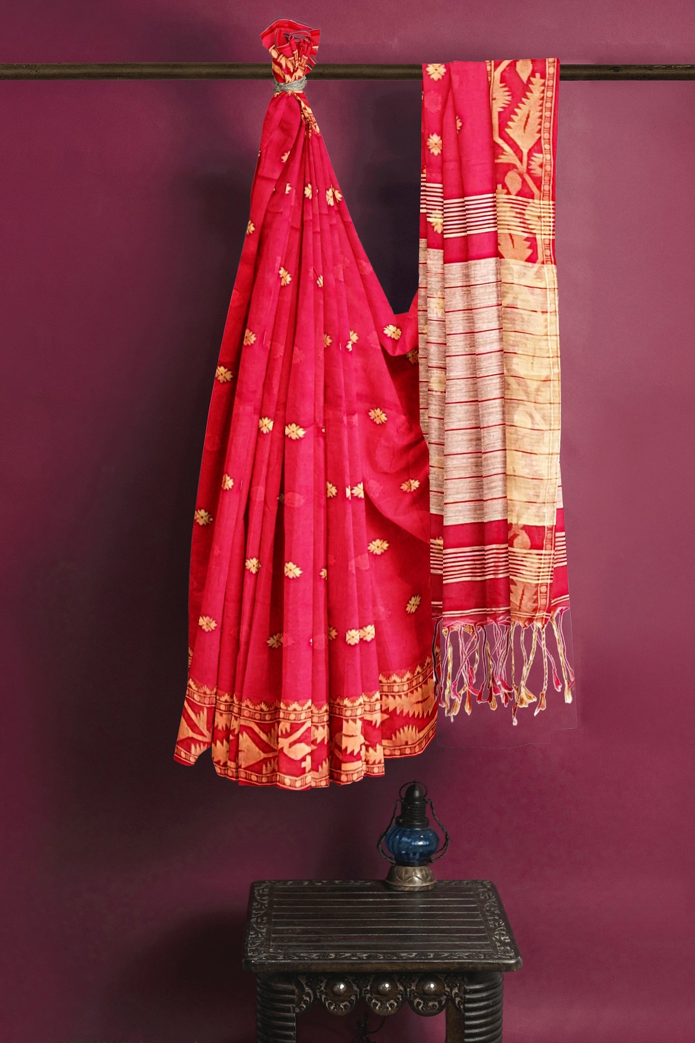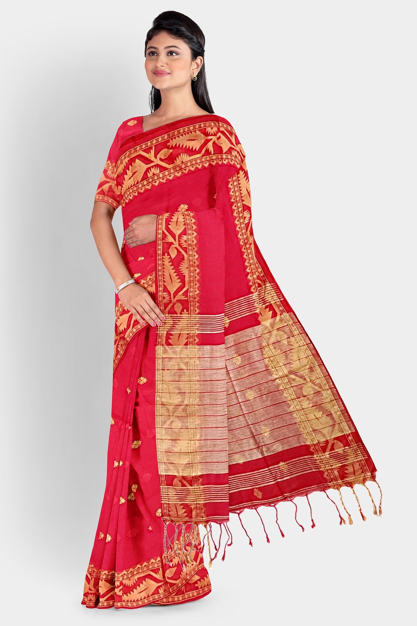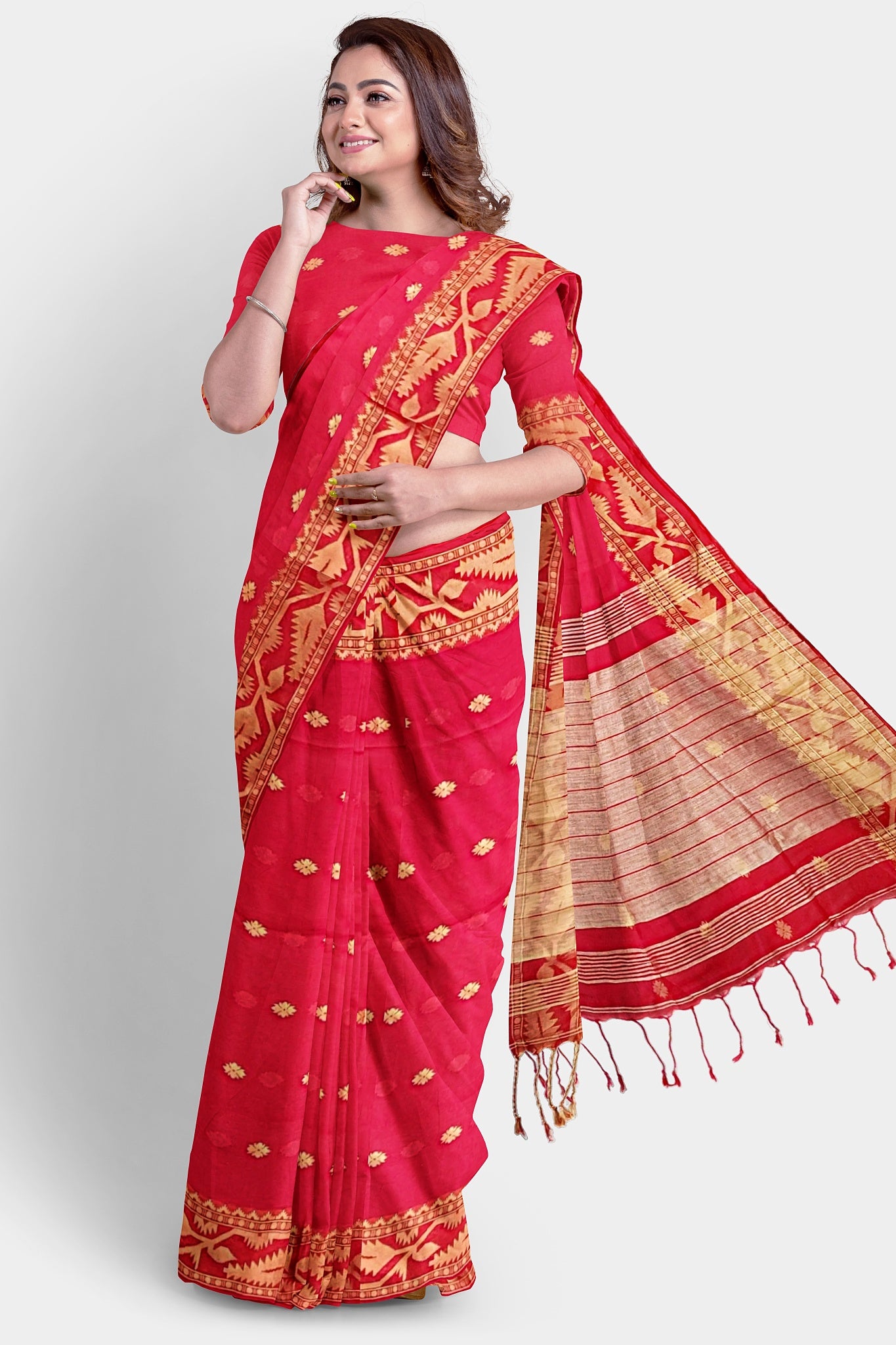Elevate your elegance with our exquisite Cotton Handloom Saree adorned with delicate buttis. Crafted to perfection, this saree combines traditional artistry with modern charm. The intricate buta work adds a touch of sophistication, creating a harmonious blend of culture and style. Wrap yourself in the comfort of breathable cotton. Perfect for any occasion, this saree celebrates both heritage and contemporary fashion, making you the center of attention wherever you go.