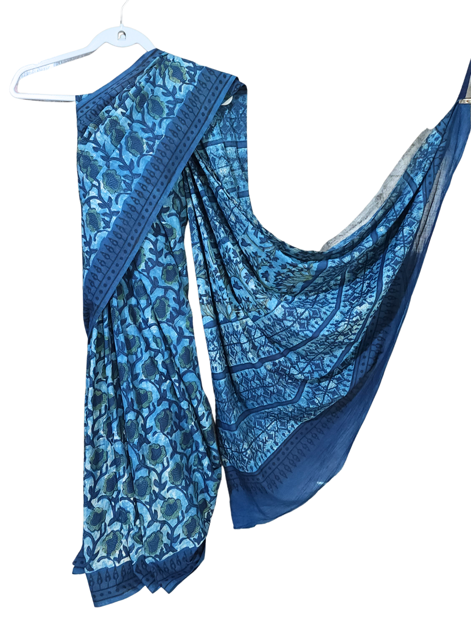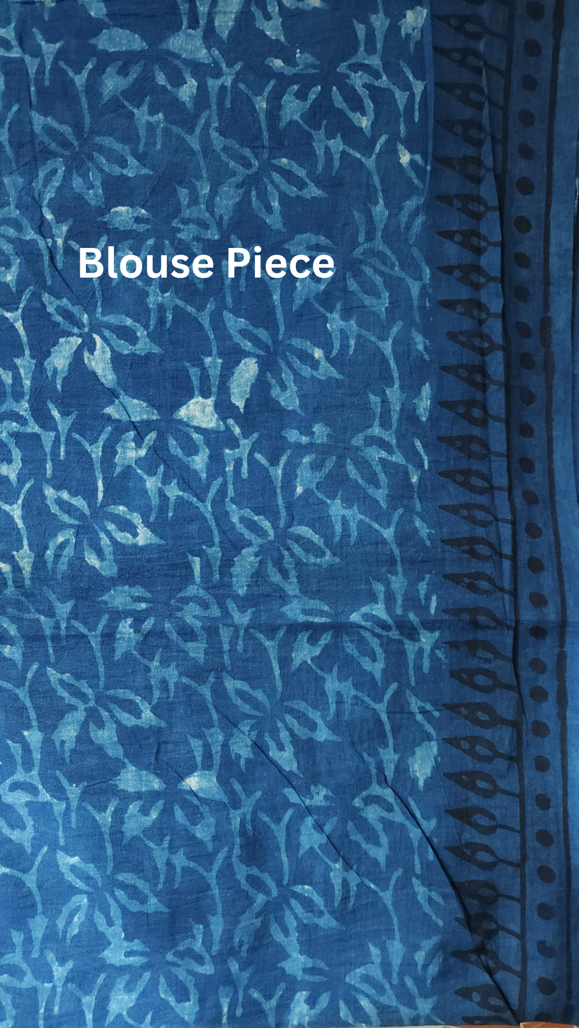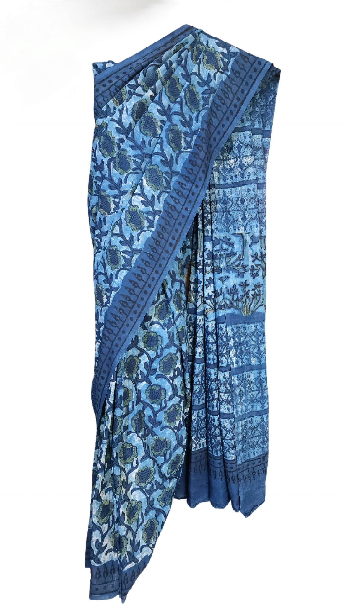 Navy Blue | Mul Mul Cotton Ajrakh Hand Block Printed Saree