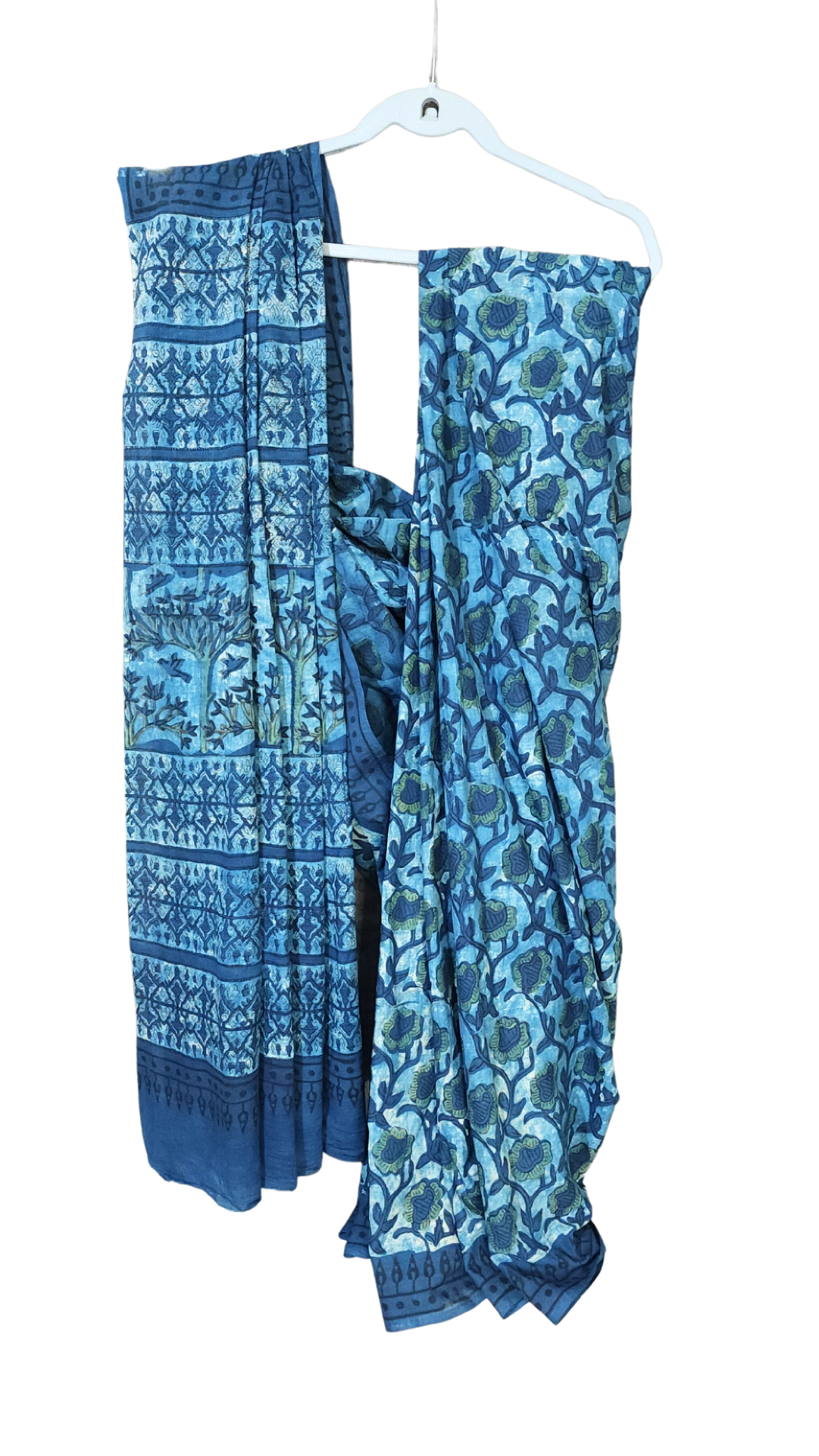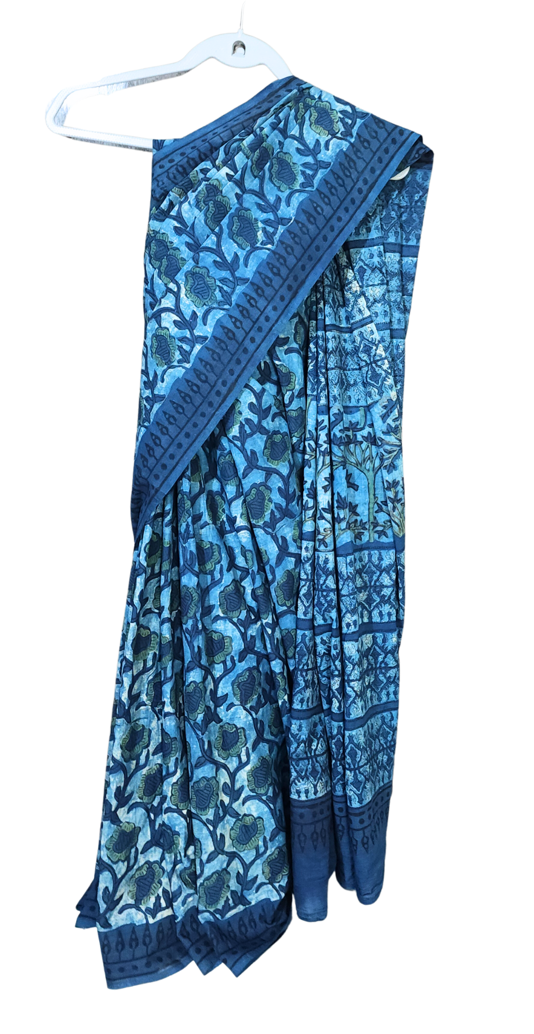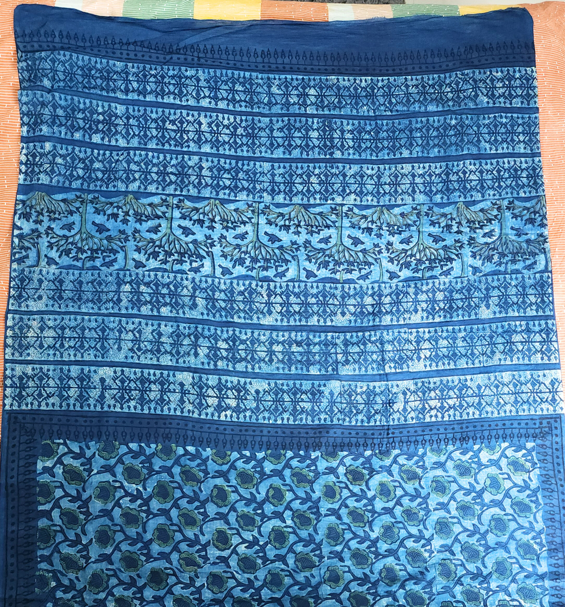 Navy Blue | Mul Mul Cotton Ajrakh Hand Block Printed Saree
