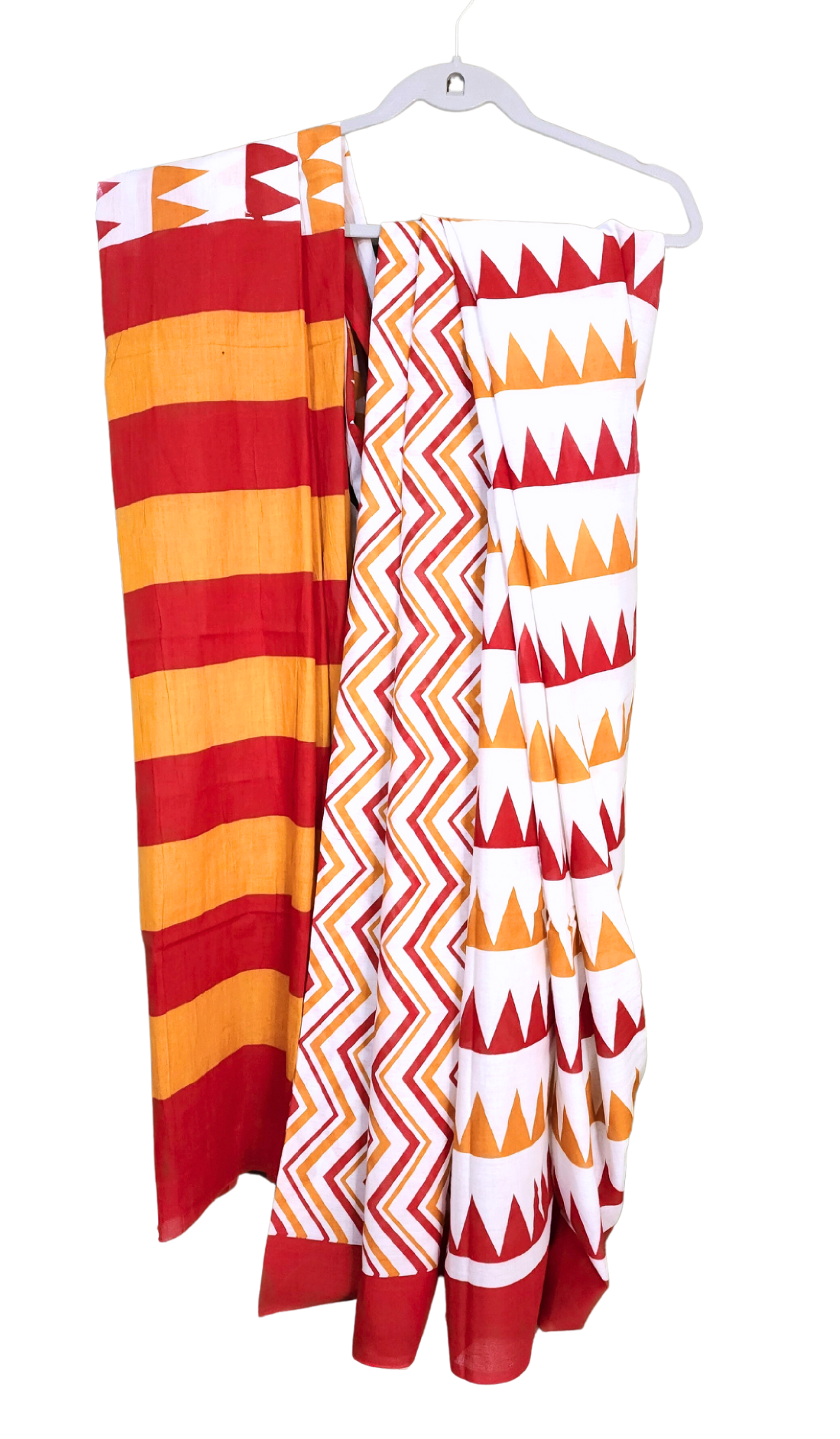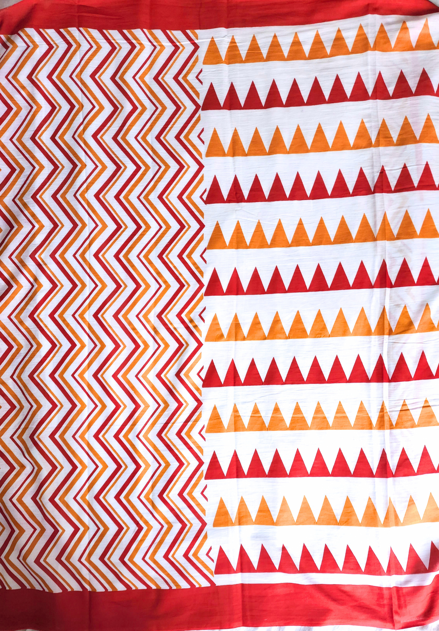 Orange & white | Mul Cotton Printed Saree