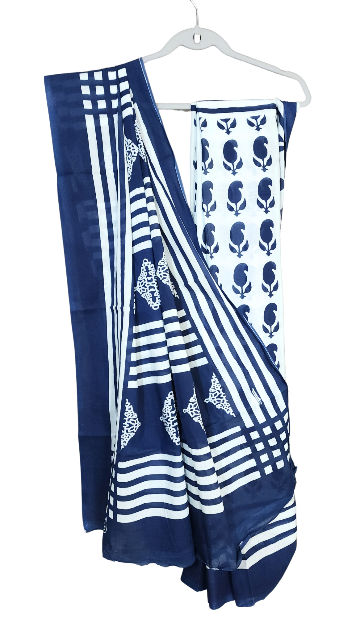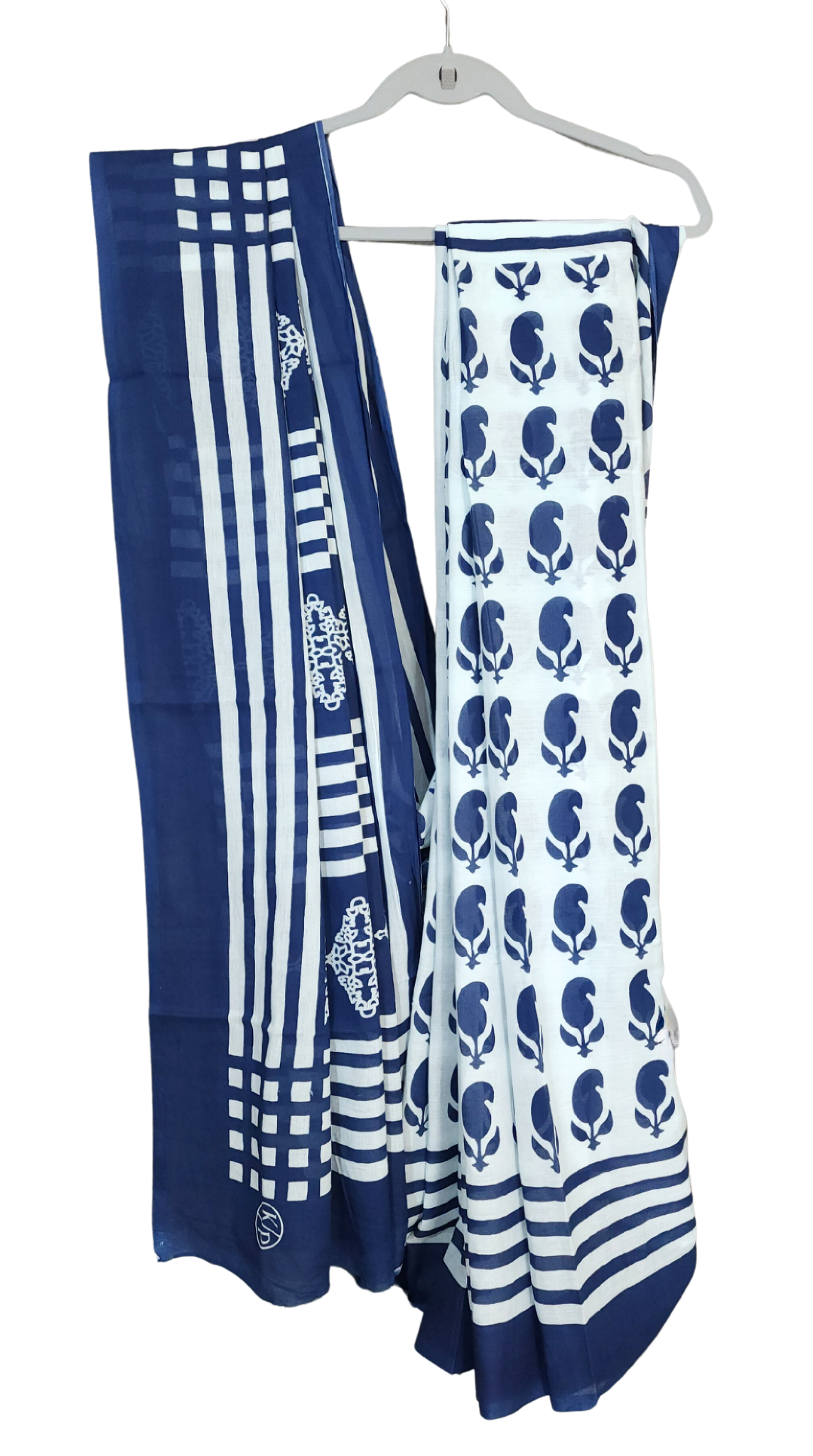 White & Blue | Mul Cotton Printed Saree