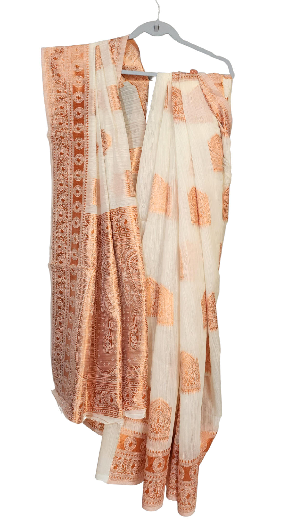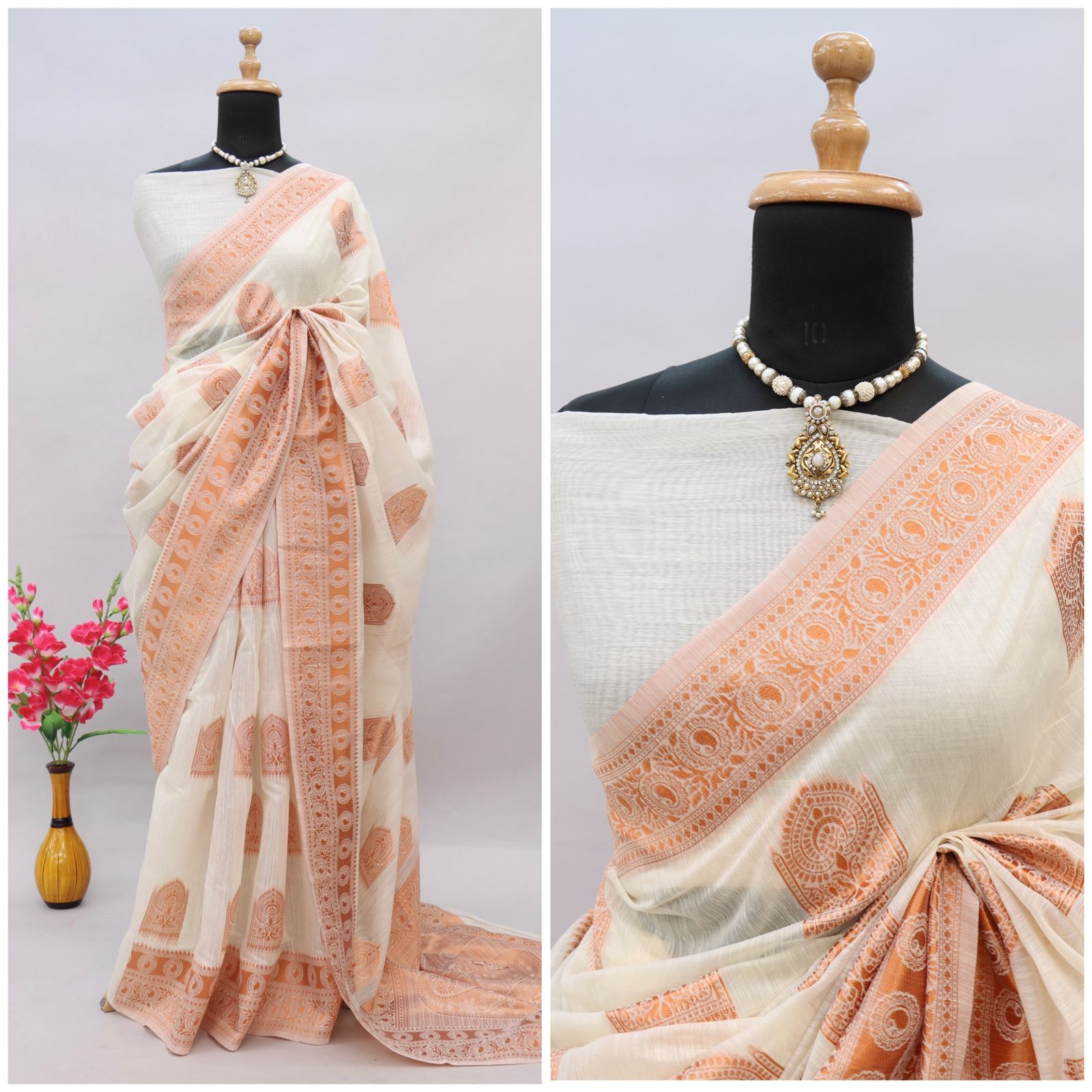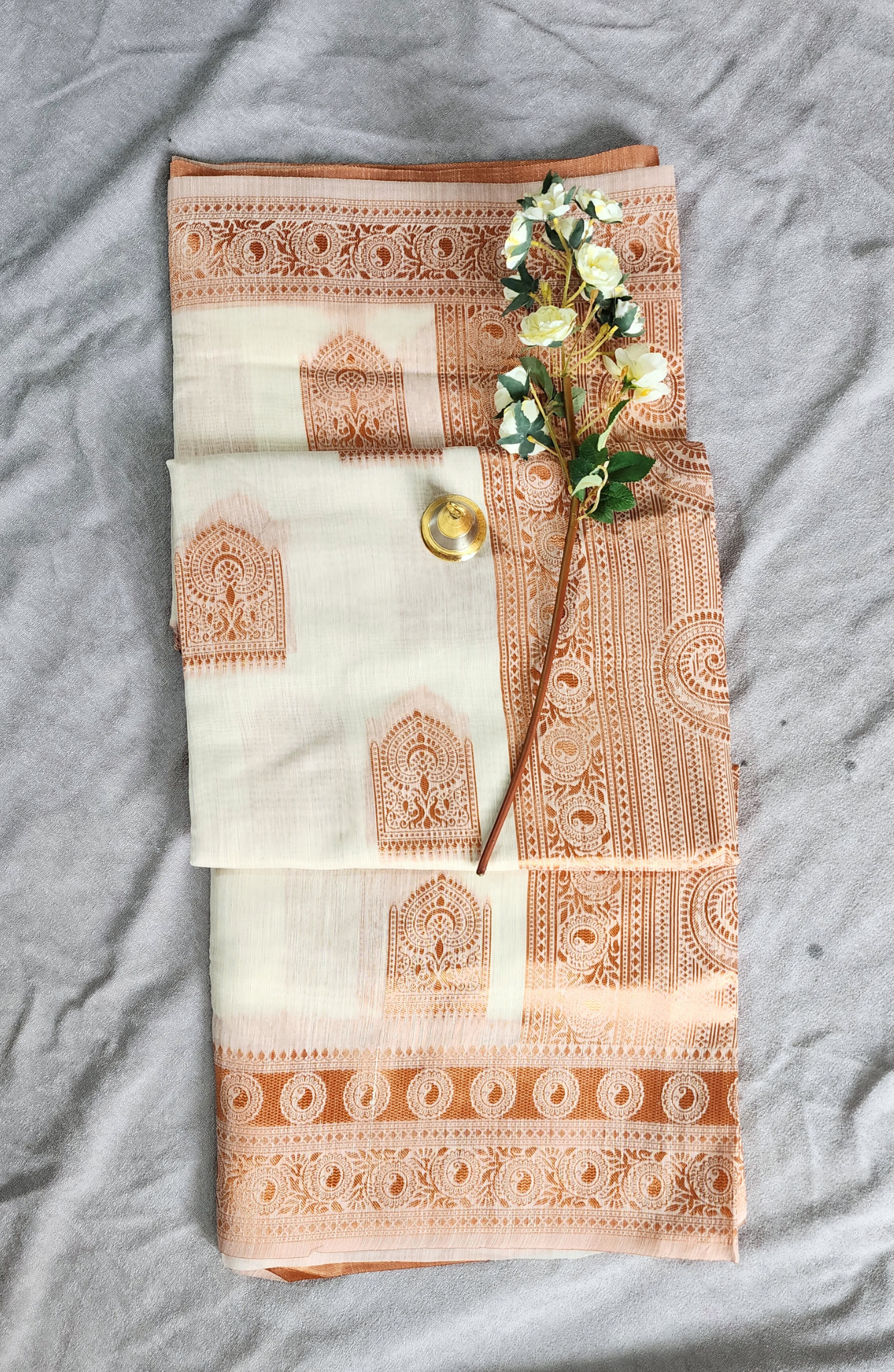 Cream | Cotton Silk Saree with Antique Gold Zari Pallu