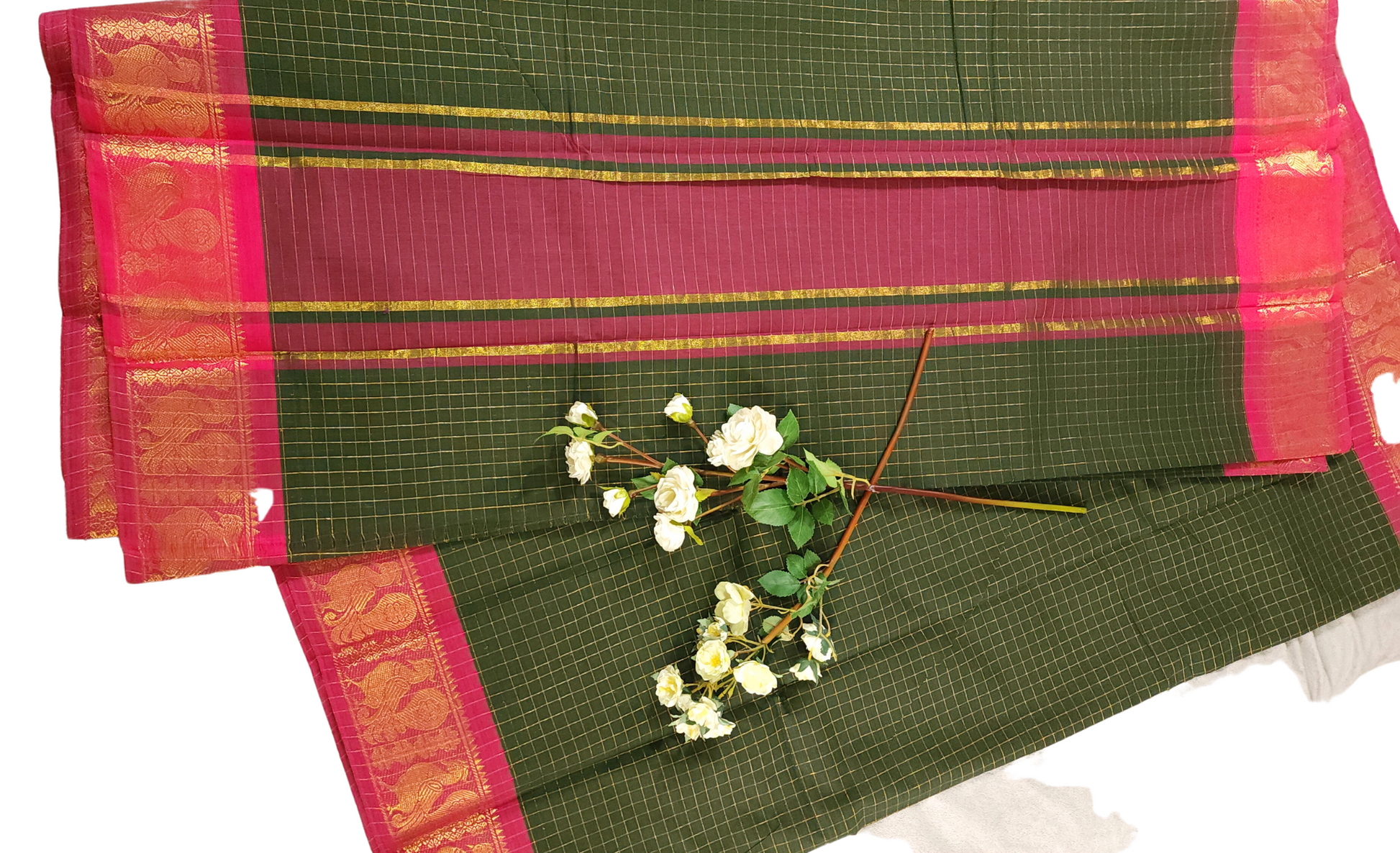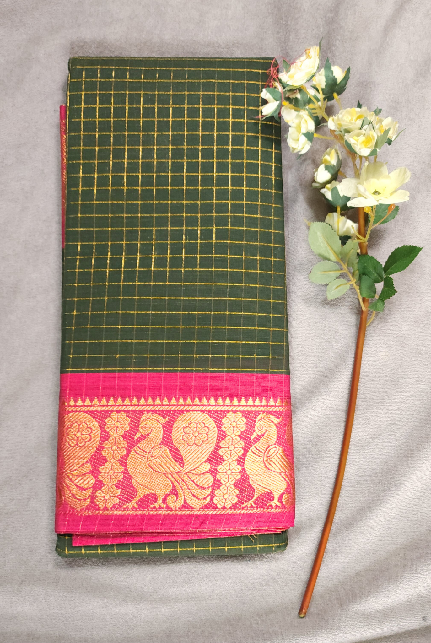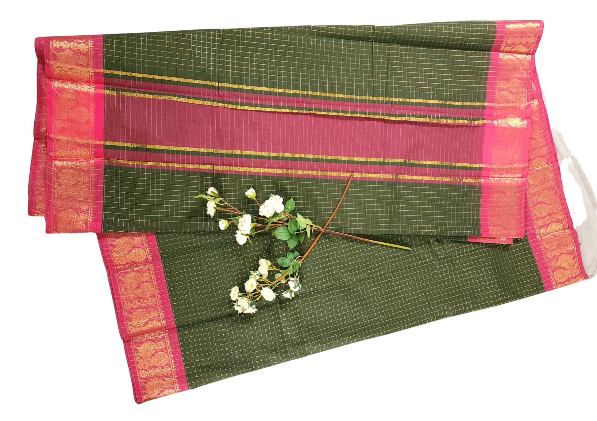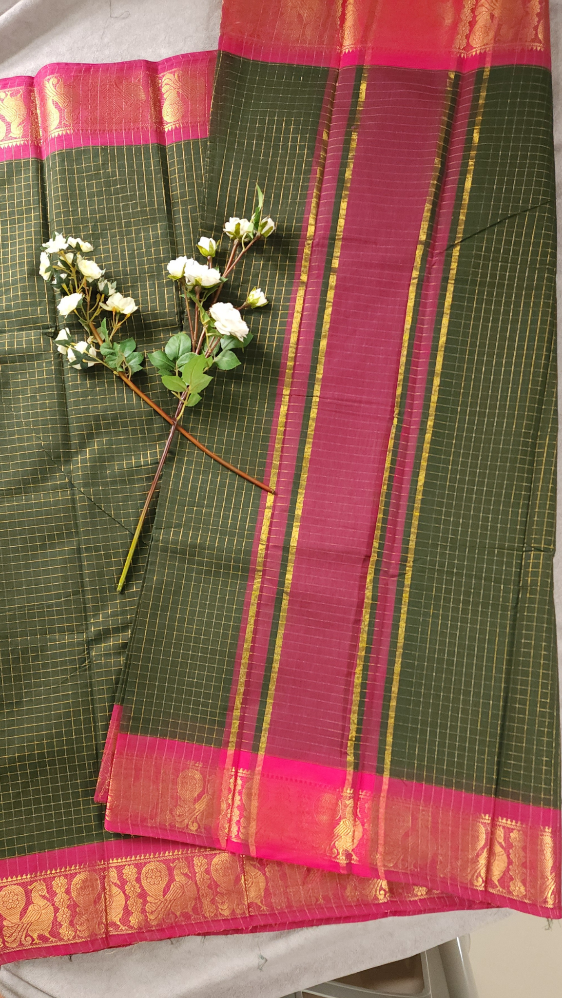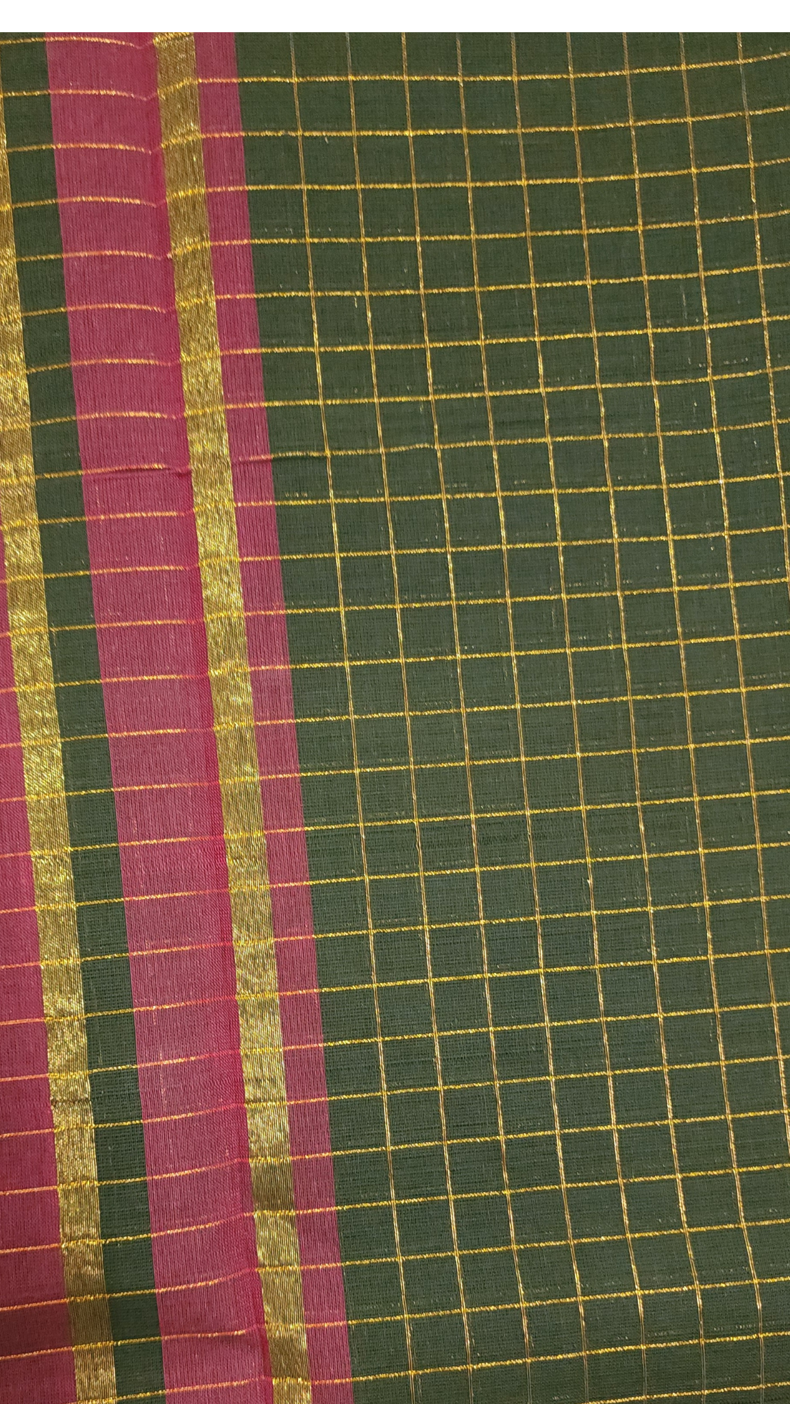 Dark Olive Green | Sungudi Cotton Zari Checks Handloom Saree