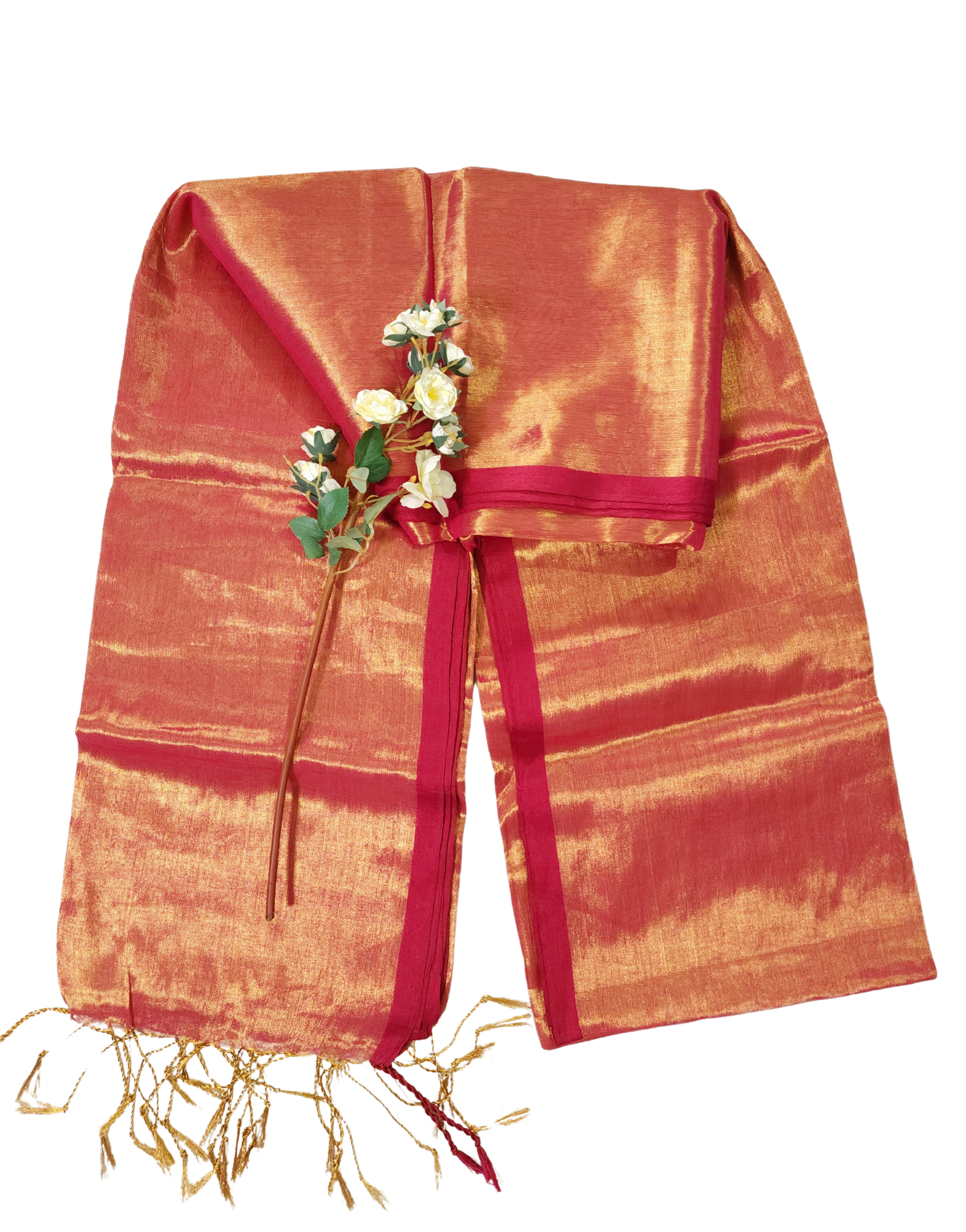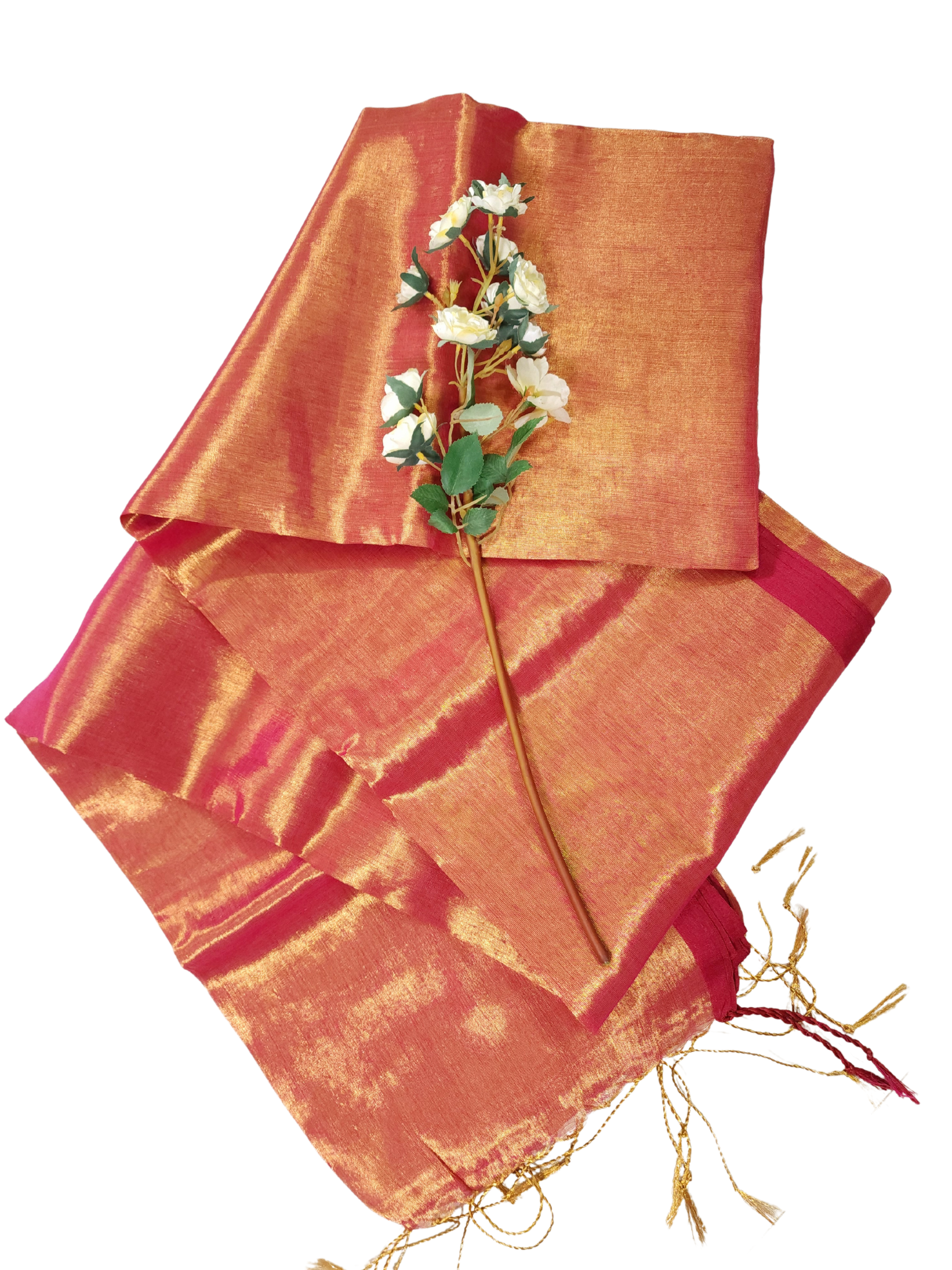 Indulge in the sheer luxury of our Tissue Cotton Handloom Saree. Meticulously handwoven to perfection, it embodies the artistry of traditional craftsmanship. The delicate blend of cotton and tissue fabric exudes elegance while ensuring a feather-light feel. This saree effortlessly drapes around you, making every movement graceful. Whether it's a formal affair or a casual outing, this saree promises comfort and style in one exquisite package. Elevate your wardrobe with this timeless masterpiece that captures the essence of both tradition and modernity.