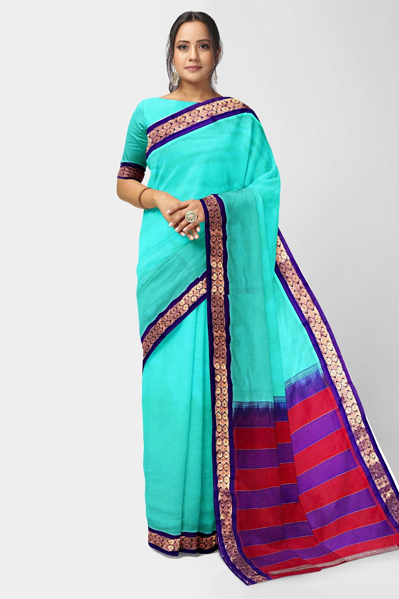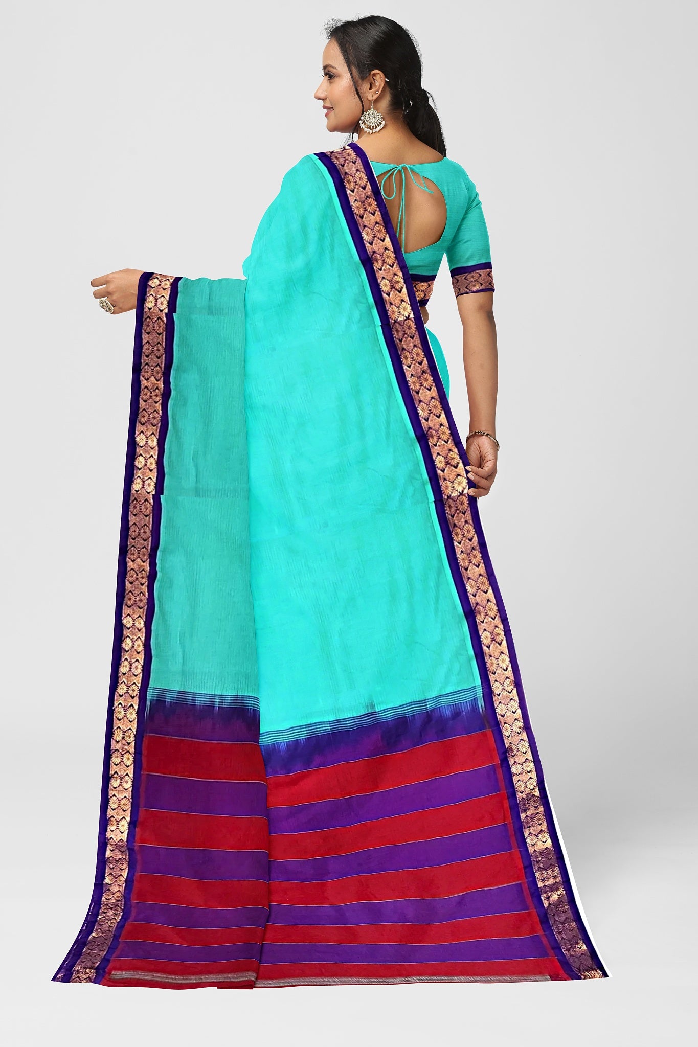 Made from 100% pure cotton, it drapes gracefully and ensures unmatched comfort. The intricate handloom work and vibrant hues elevate its appeal, making it perfect for both casual and festive occasions.