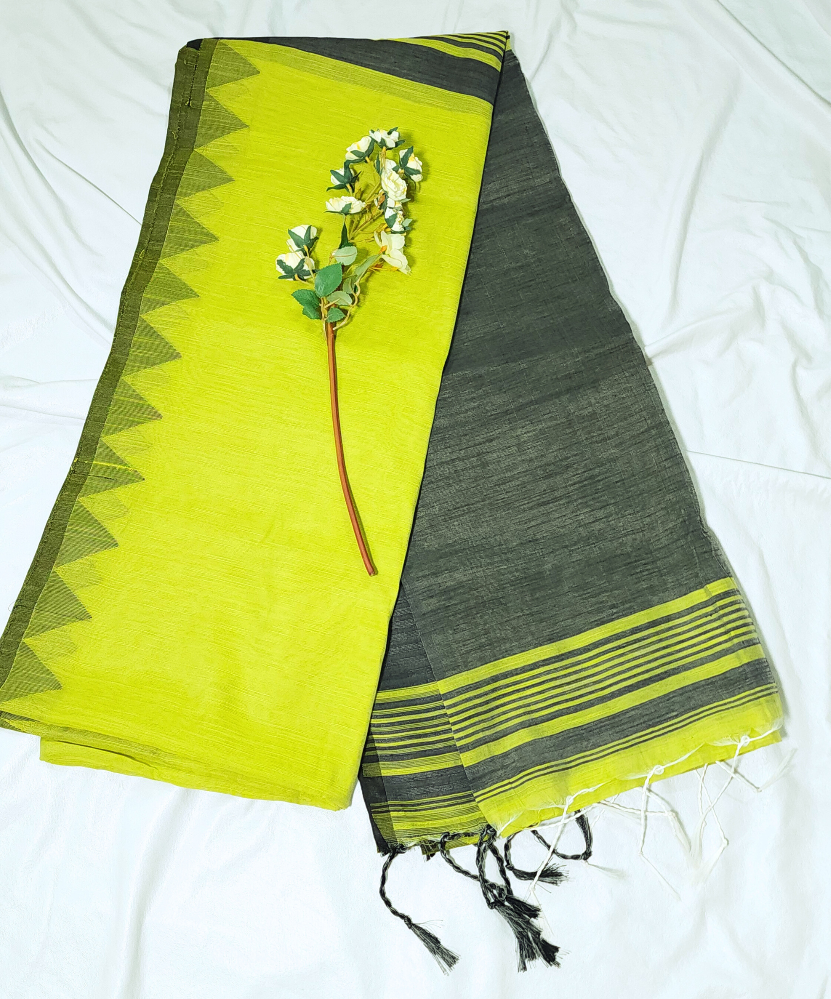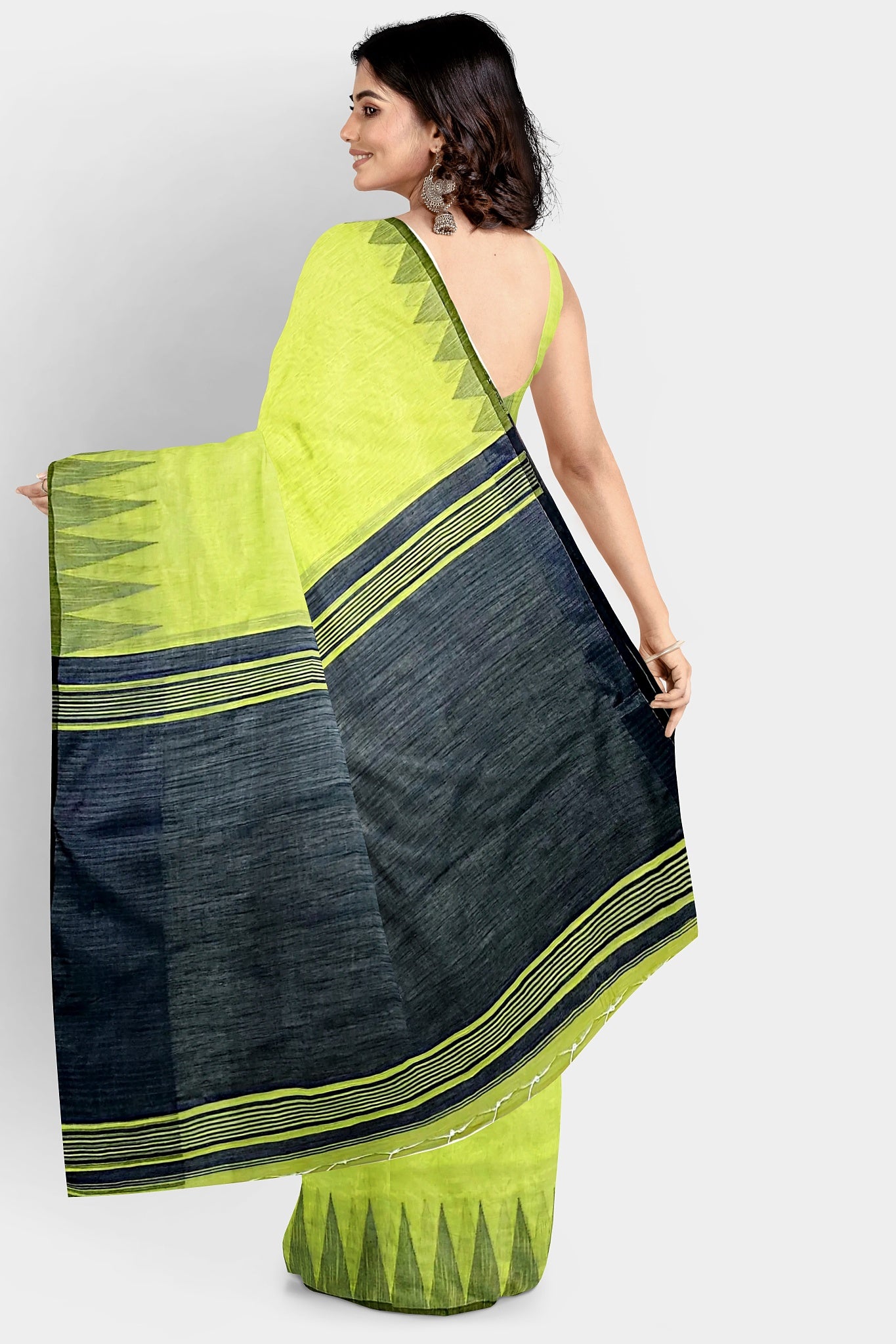 Embrace grace and tradition with our cotton Silk Handloom Saree, beautifully adorned with a captivating temple border. Elevate your style quotient with a touch of heritage, ensuring you stand out radiantly at any gathering or celebration Meticulously handcrafted, this saree exudes a unique blend of elegance and cultural richness. Whether it's a festive celebration or a special occasion, this saree ensures you exude charm and sophistication, making heads turn with every step.