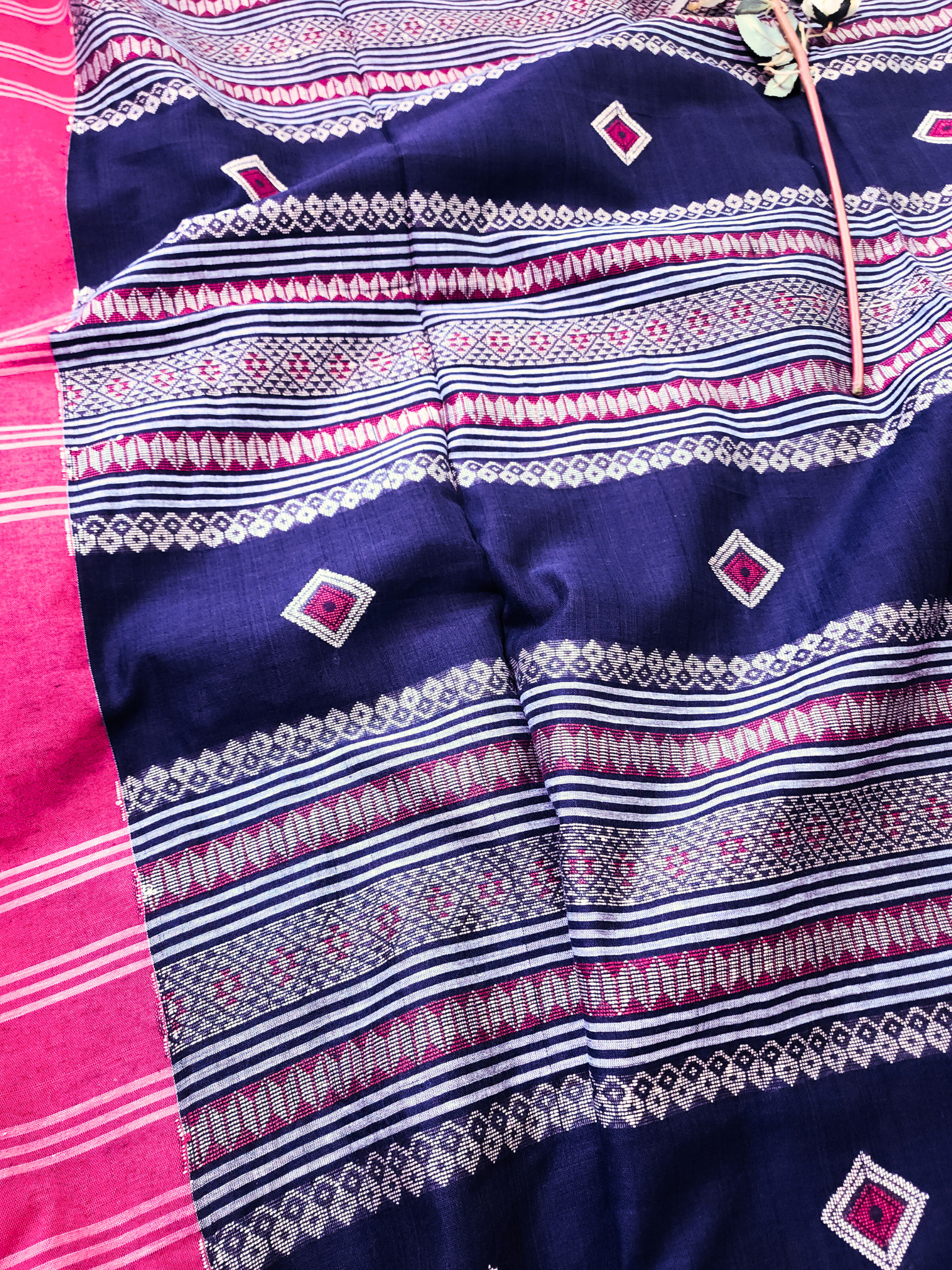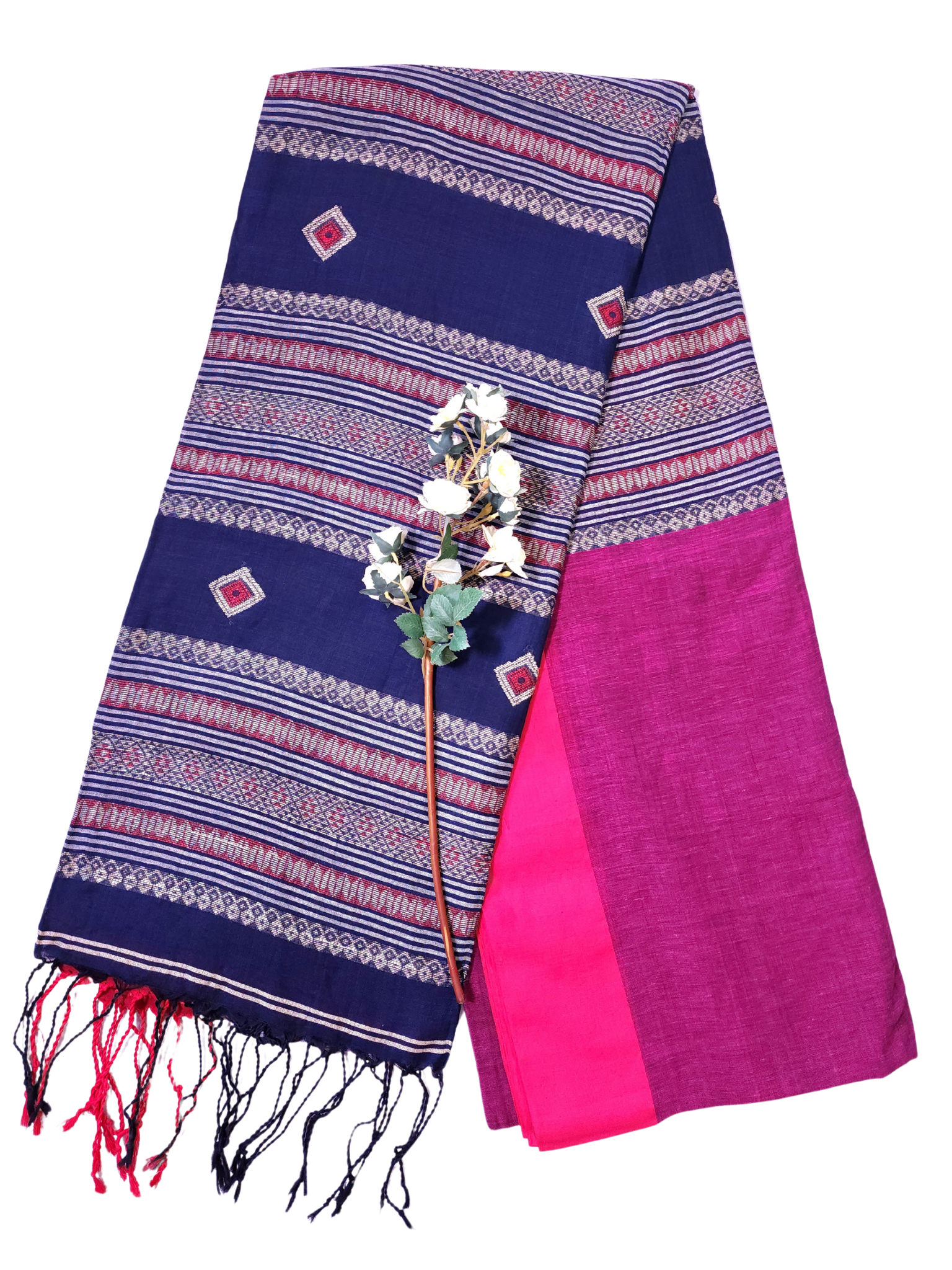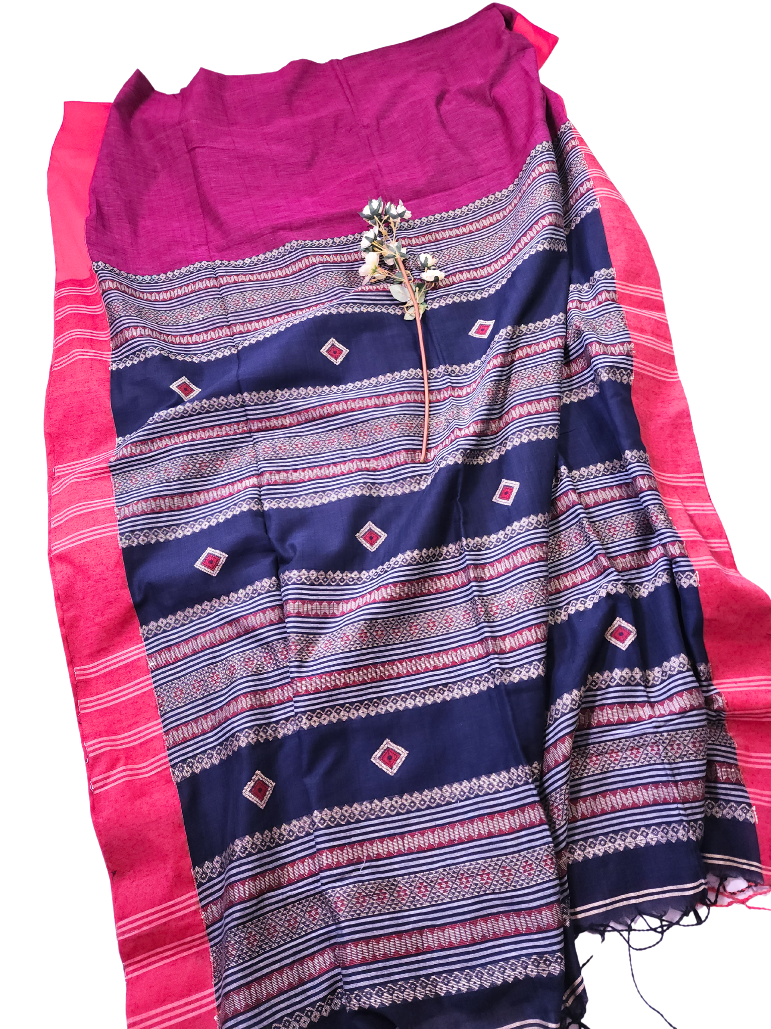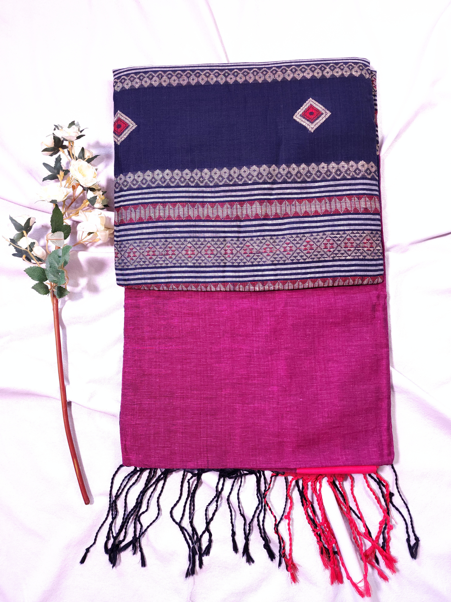 Magenta | Assam Cotton Handloom Saree with Delicate Embroidery
