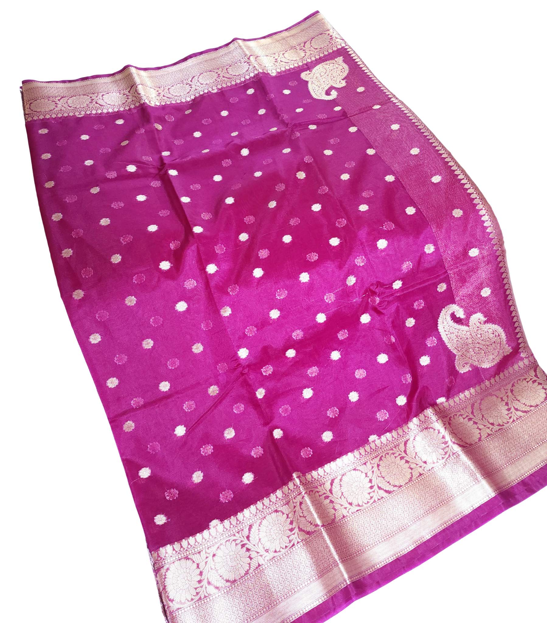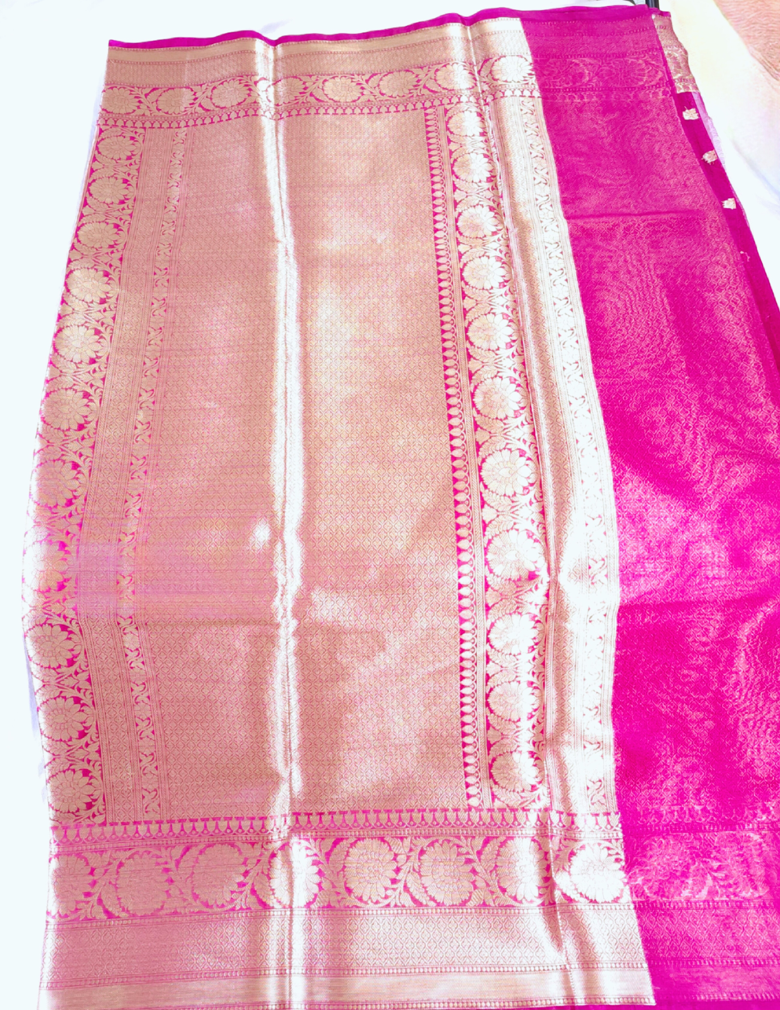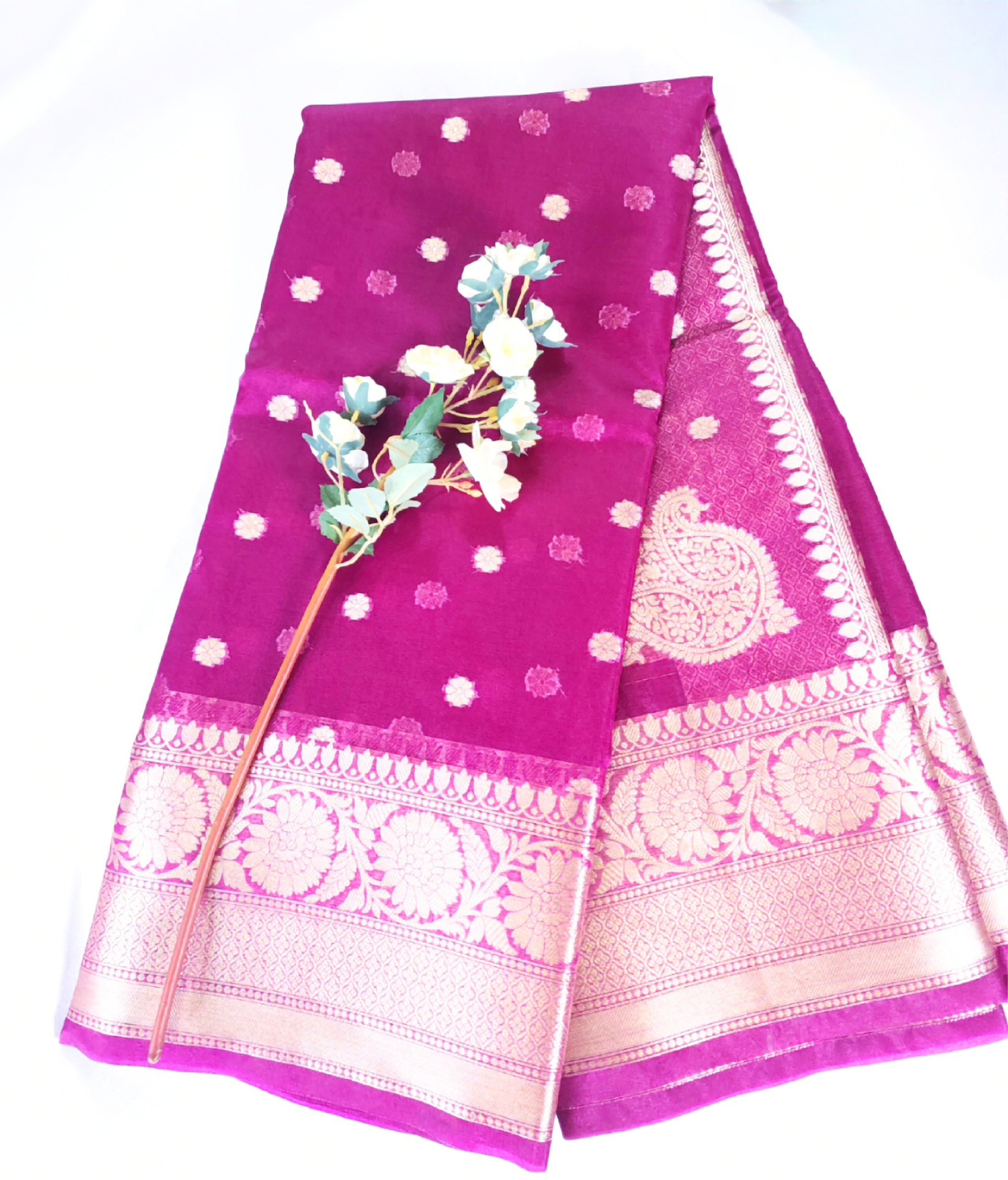 Magenta | Banarasi Kora Organza Silk Saree with Broad Zari Border