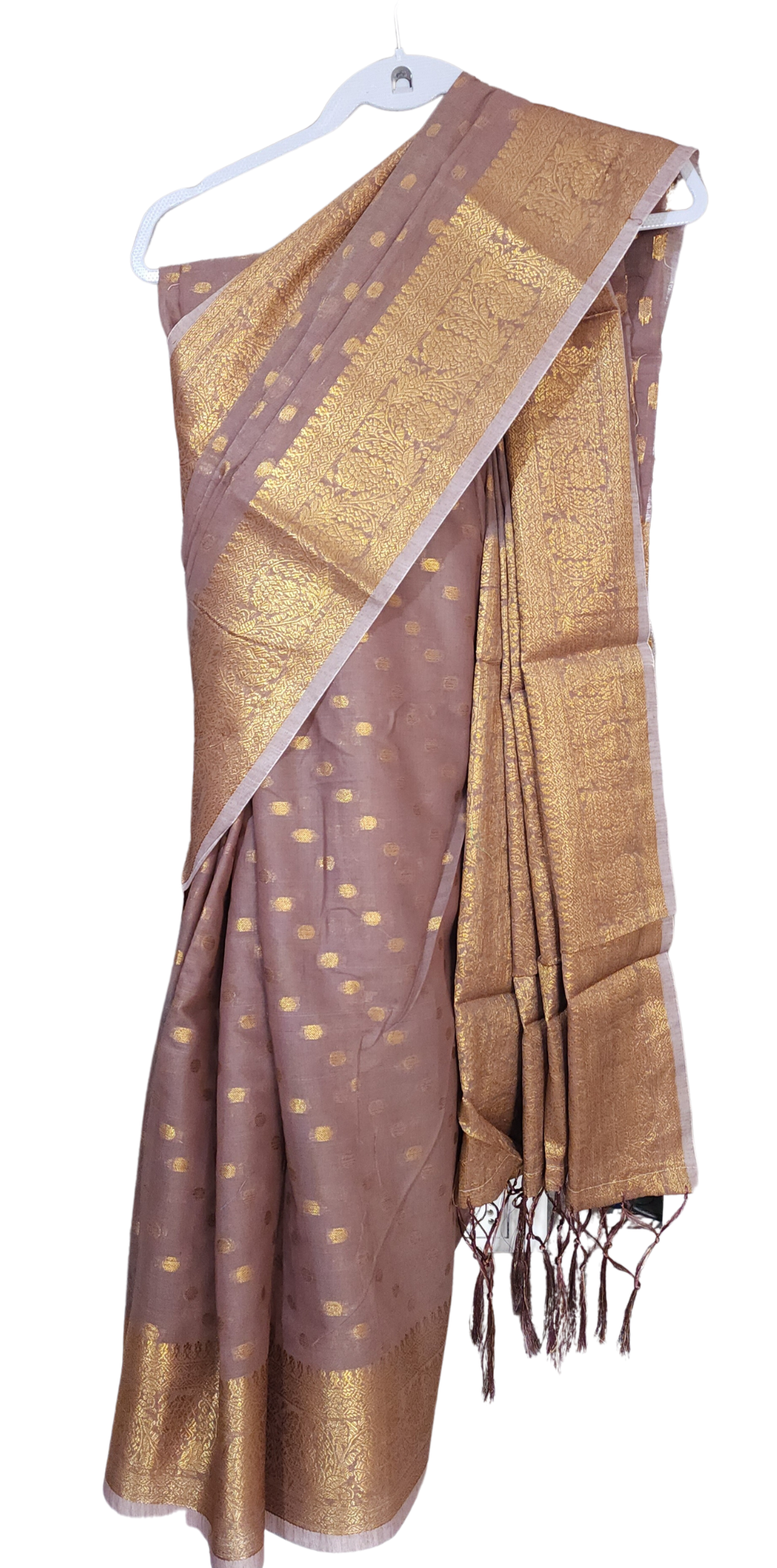 Mauve | Soft Linen Silk Butta weaving with Gold Zari and Meena work Saree