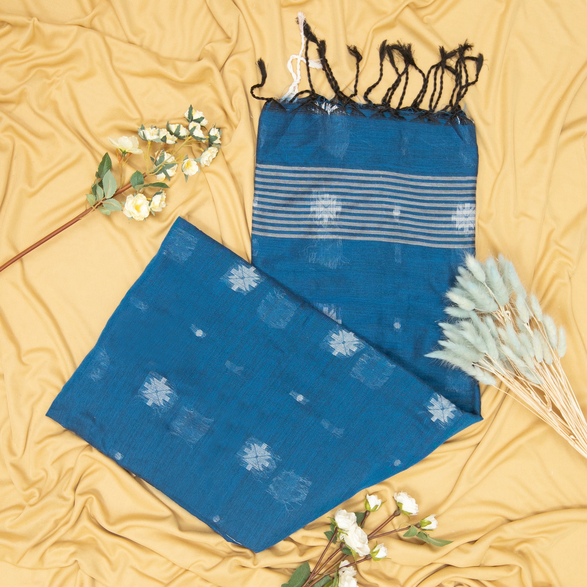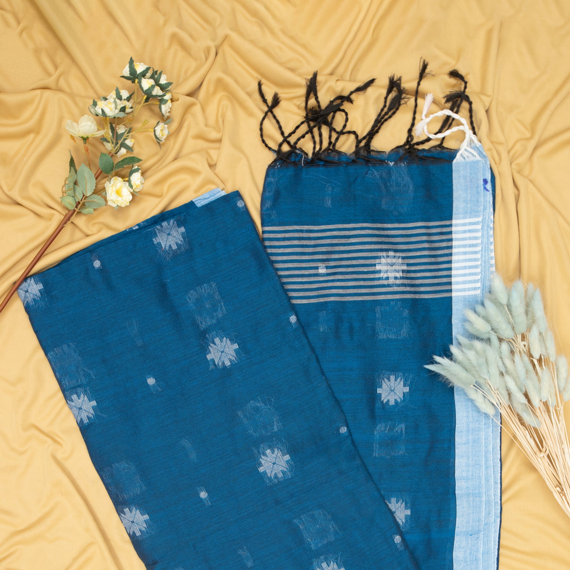 Discover the allure of our Cotton Handloom Sarees, meticulously crafted to perfection. Made with utmost care, these sarees showcase the timeless beauty of handloom weaving techniques. The soft and breathable cotton fabric ensures comfort, while the intricate patterns and designs add a touch of elegance. Whether it's a casual outing or a formal event, these sarees effortlessly combine style and tradition, making them a must-have in every fashion-forward woman's wardrobe.