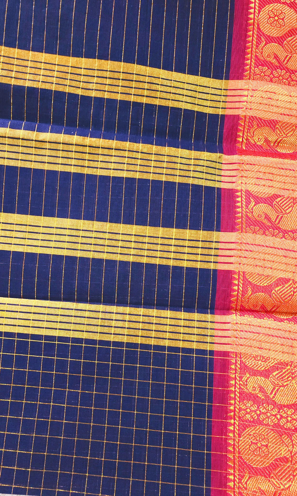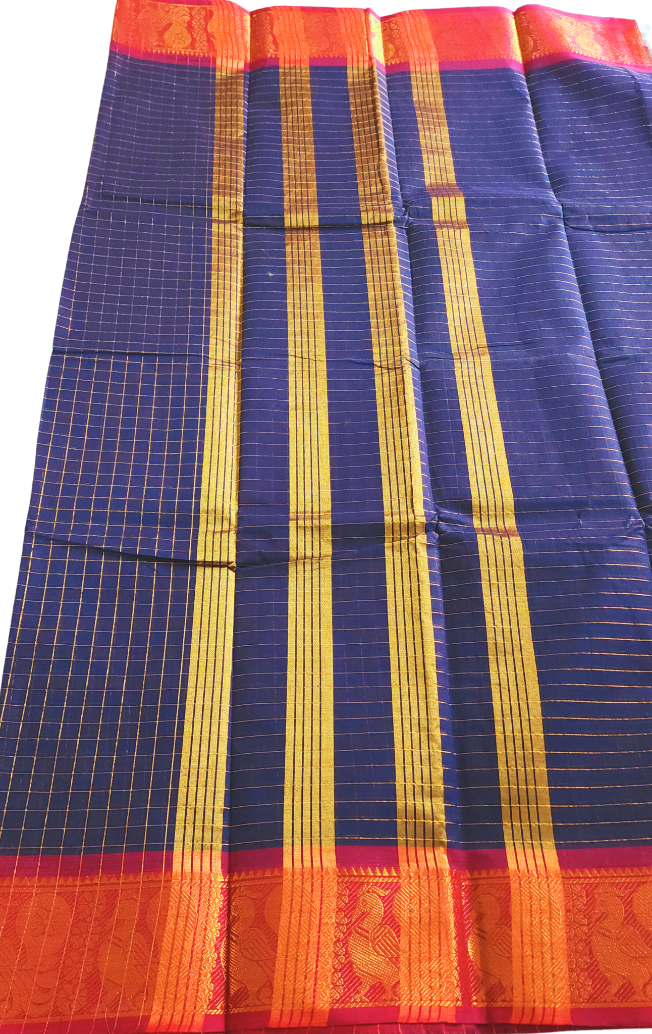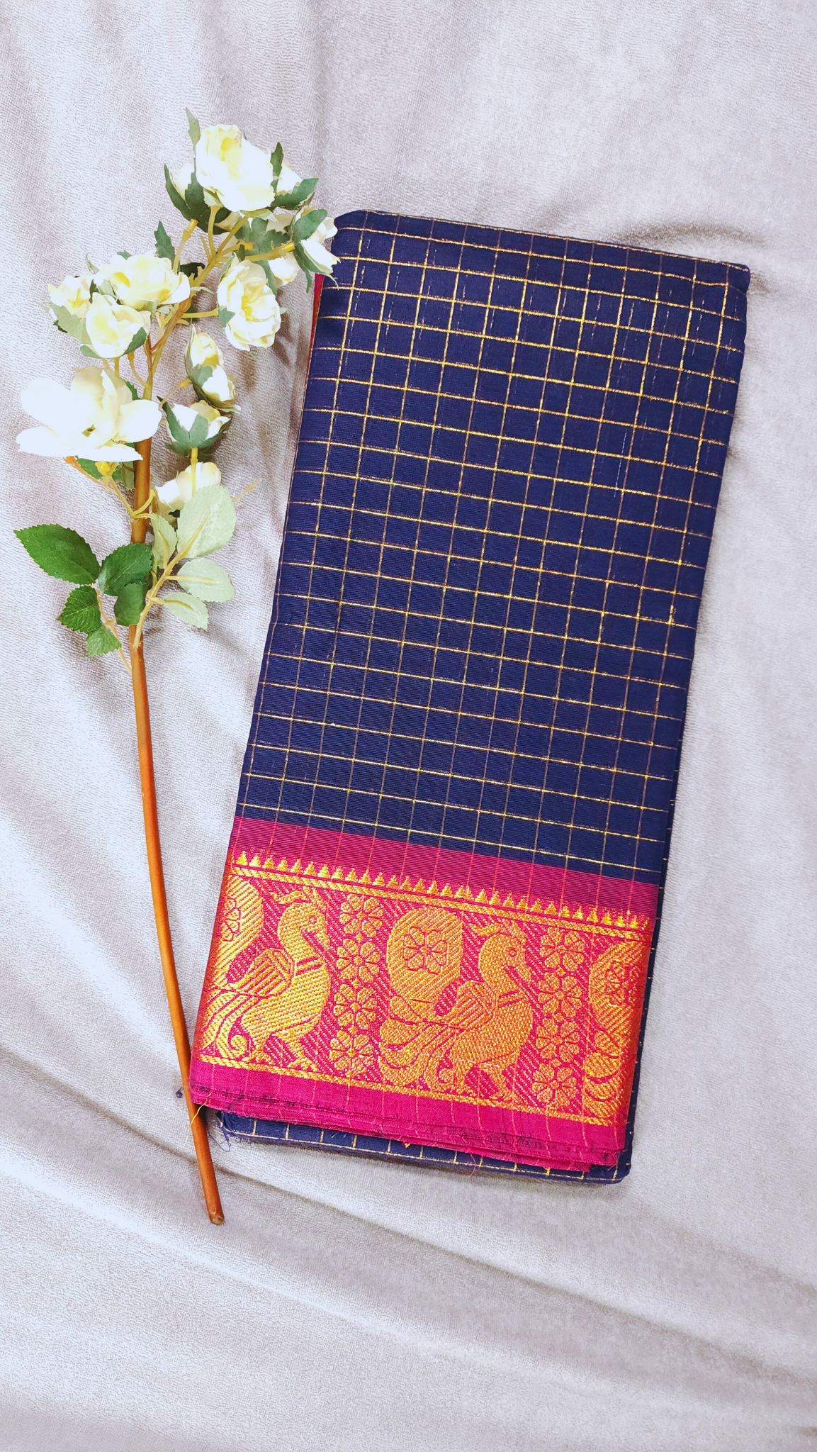 Navy Blue | Sungudi Cotton Zari Checks Handloom Saree