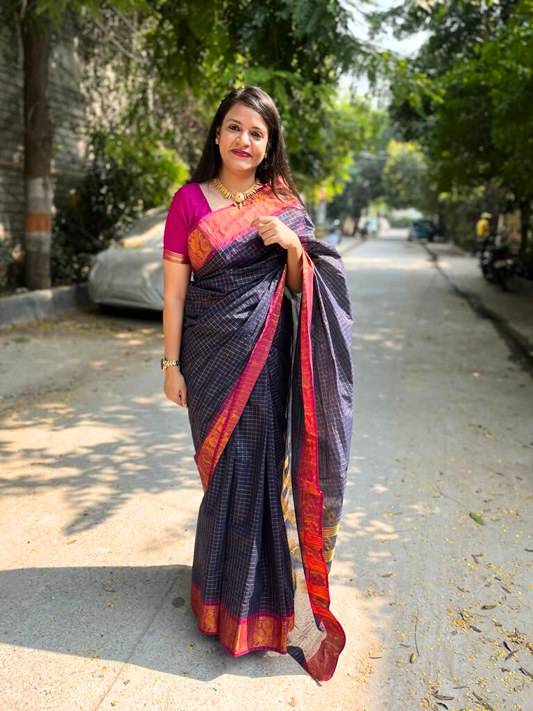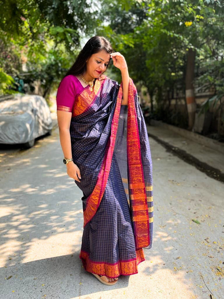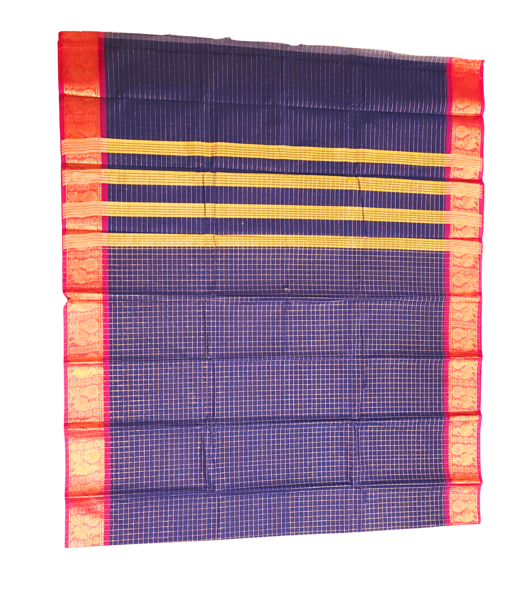 Navy Blue | Sungudi Cotton Zari Checks Handloom Saree