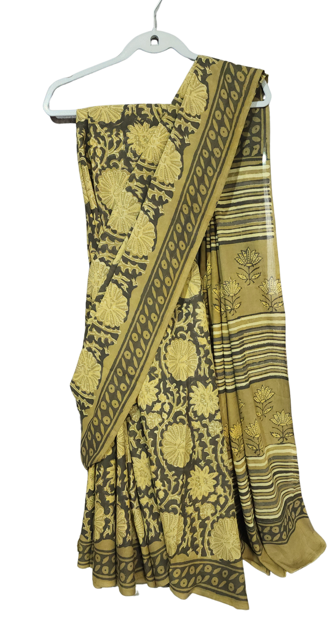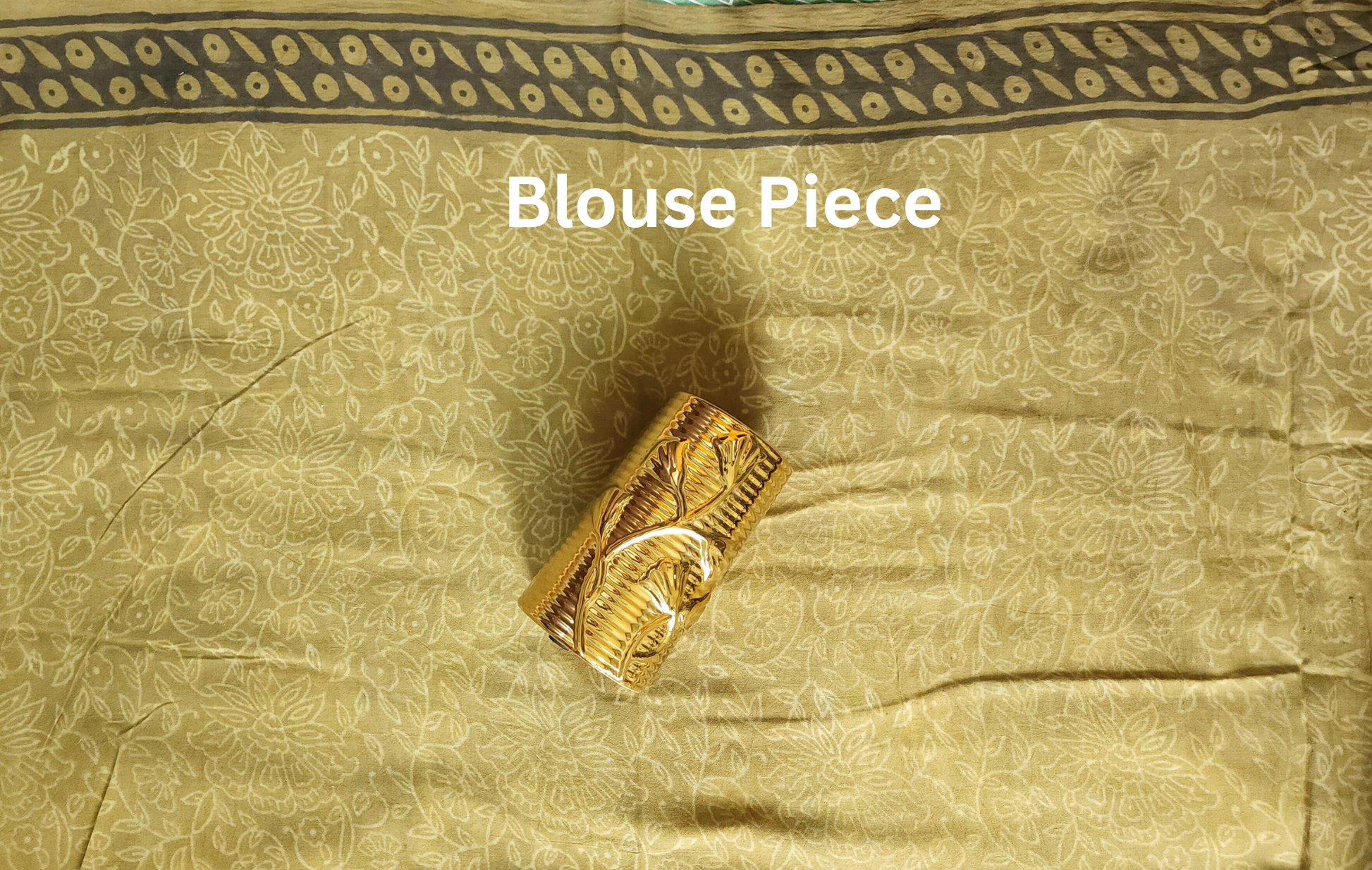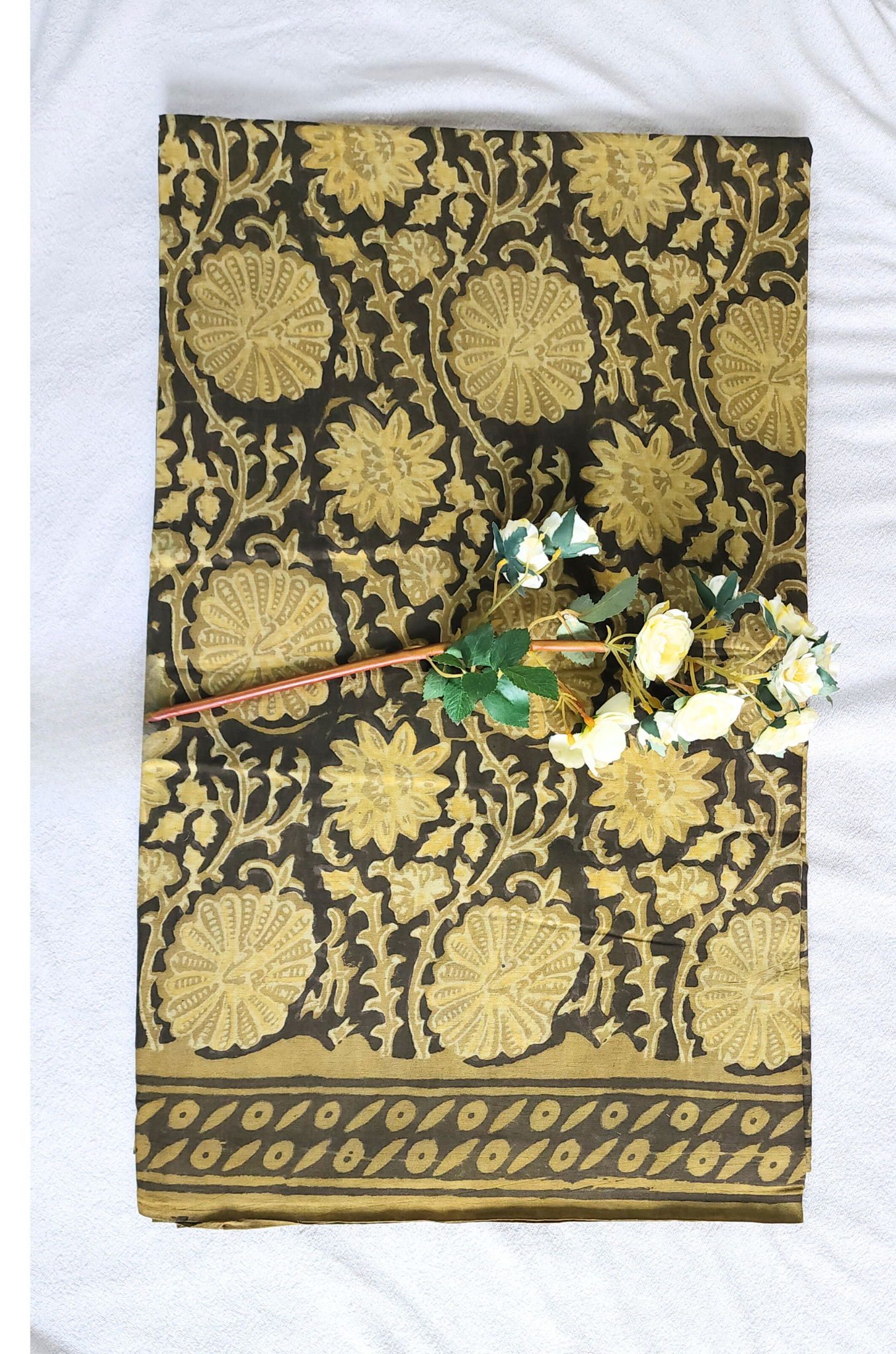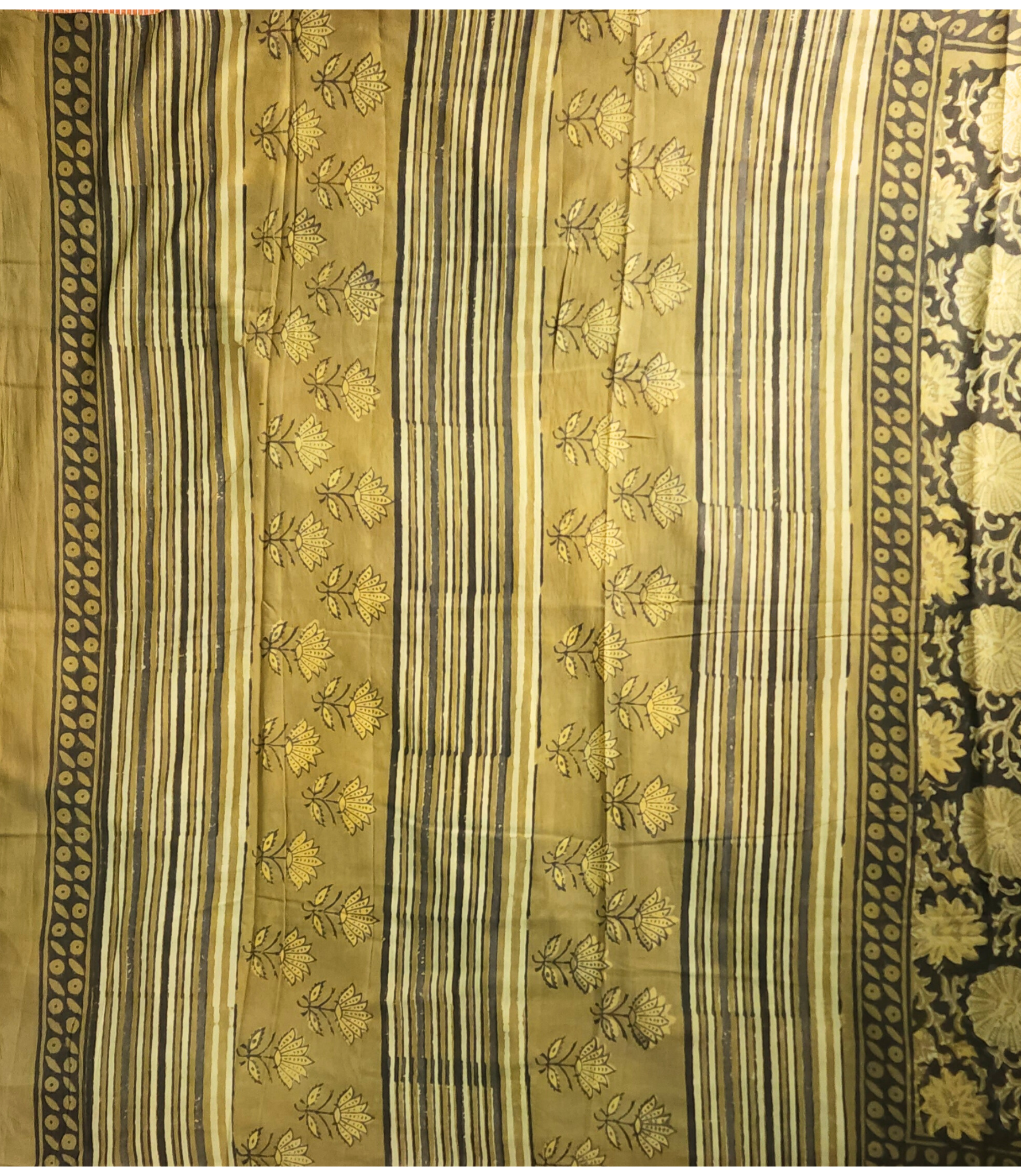 Olive Green | Mul Mul Cotton Ajrakh Hand Block Printed Saree
