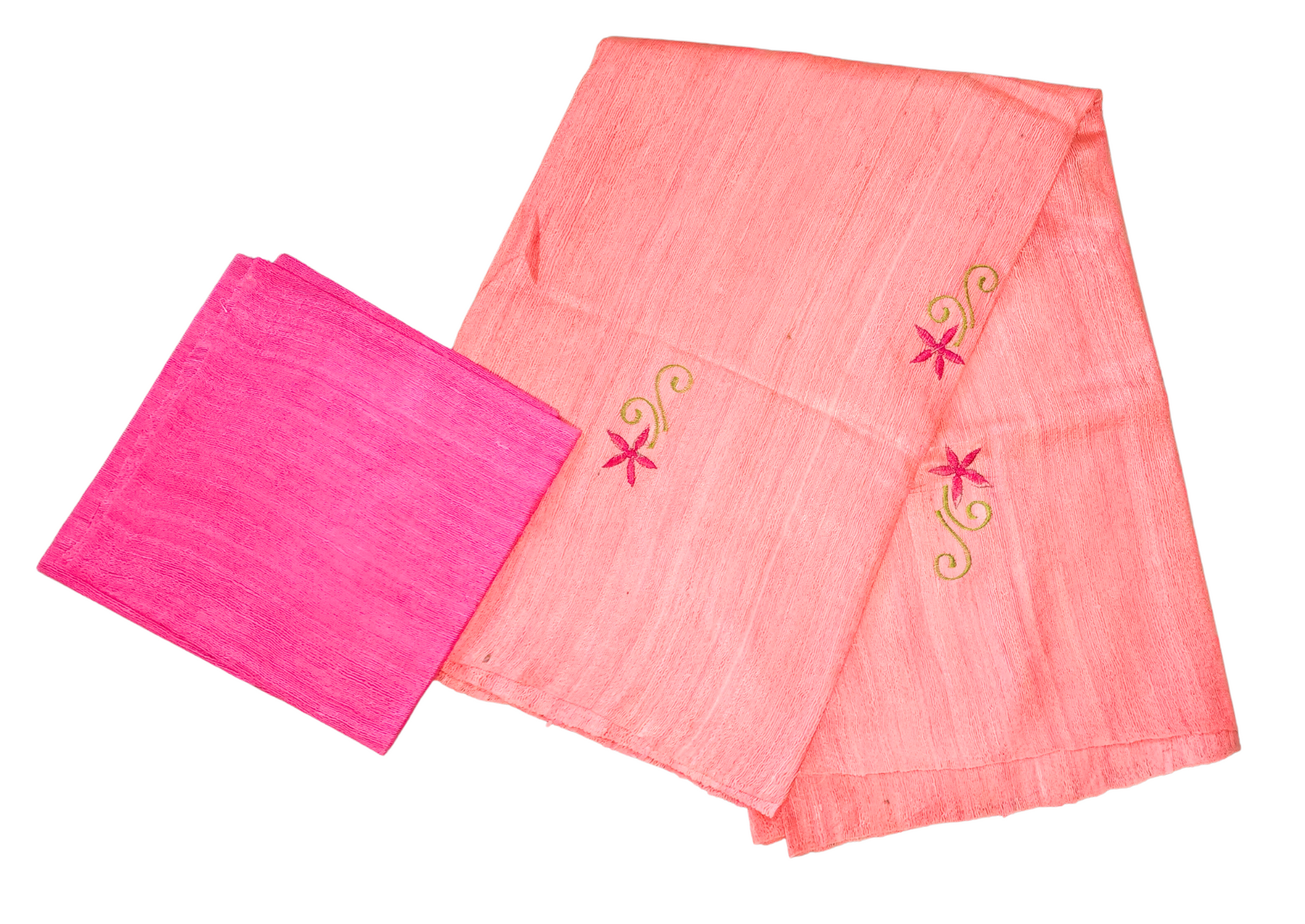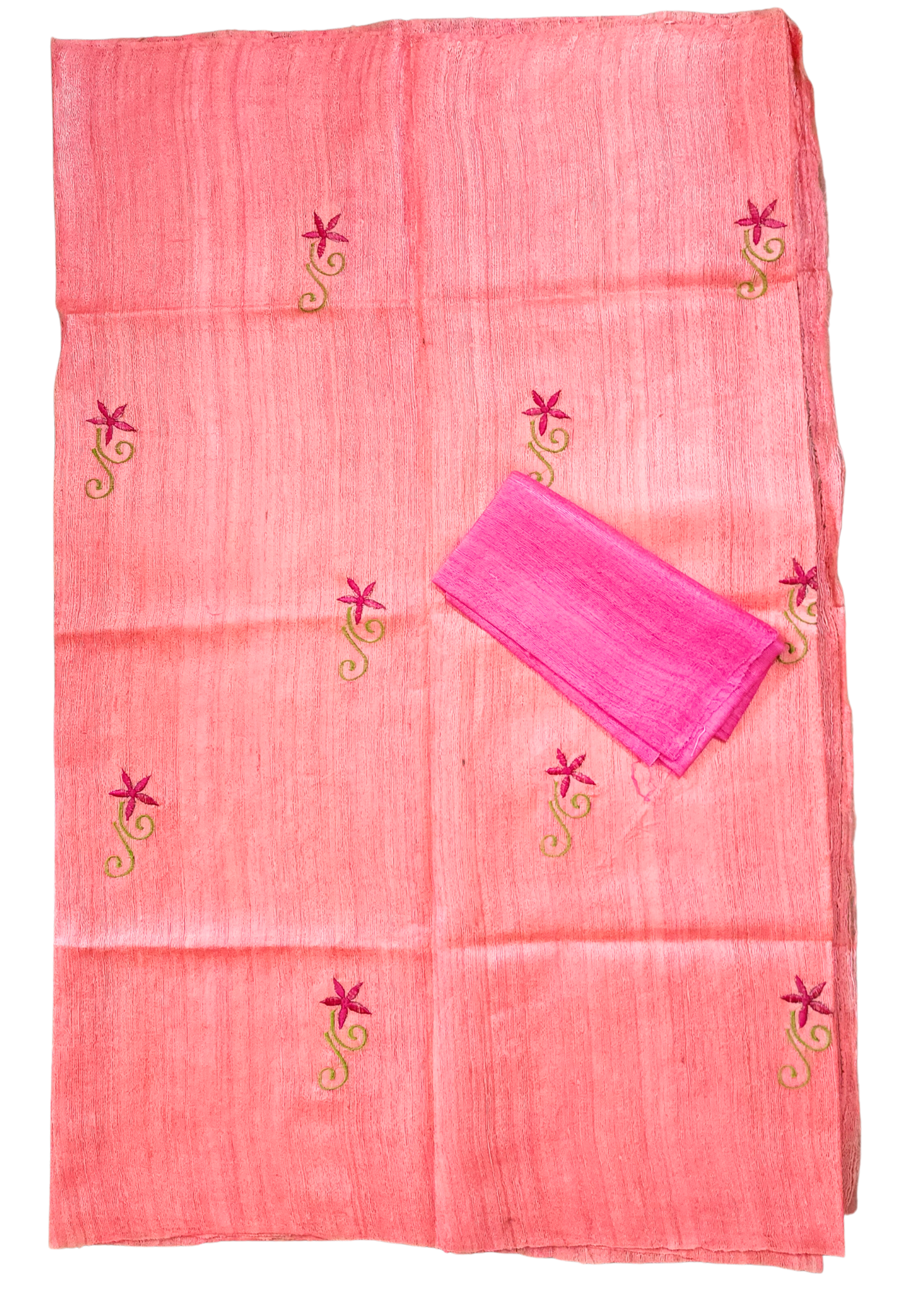 Peach | Pure Tussar Ghicha Silk Sarees Embroidery Saree with Silk Mark