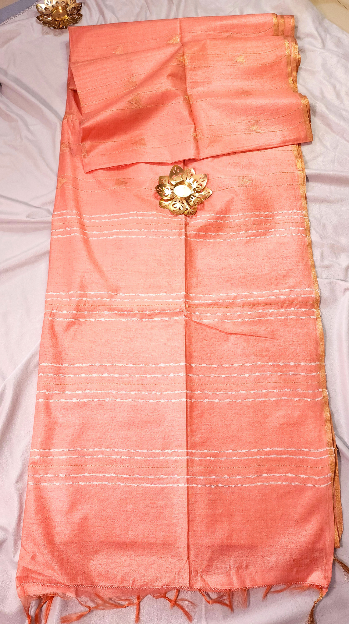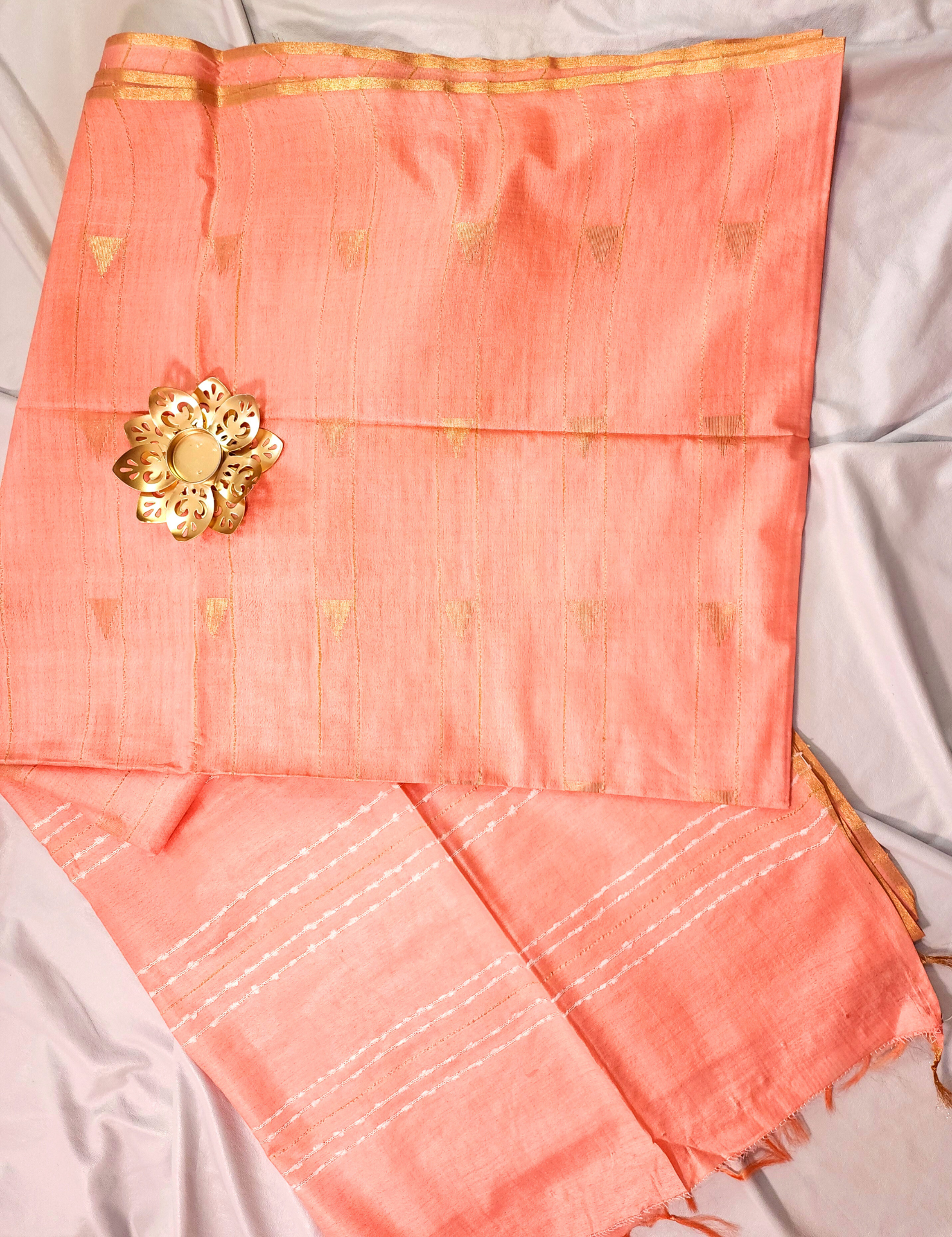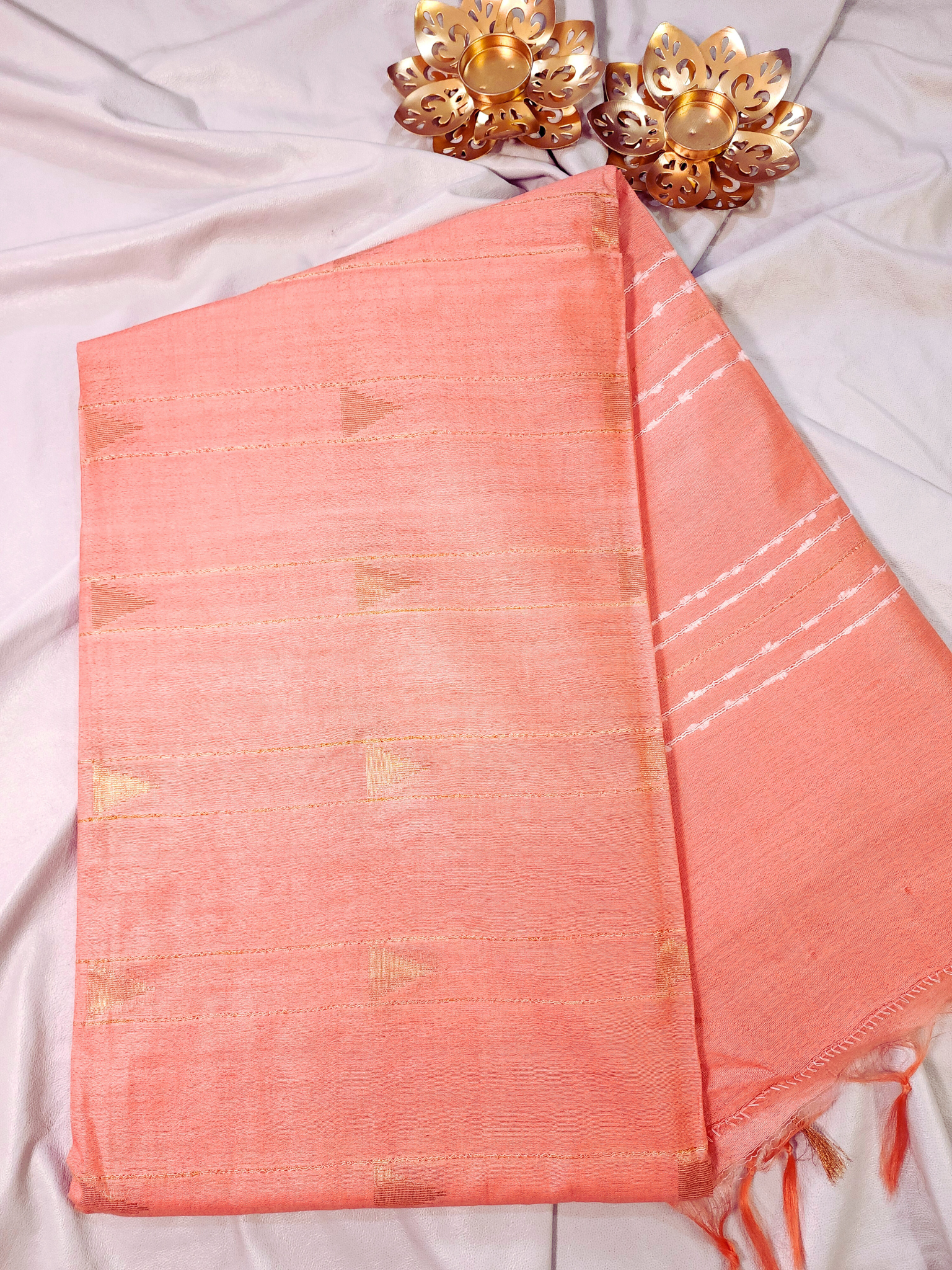 Peach | Soft Linen Saree with Woven Zari Temple Buti
