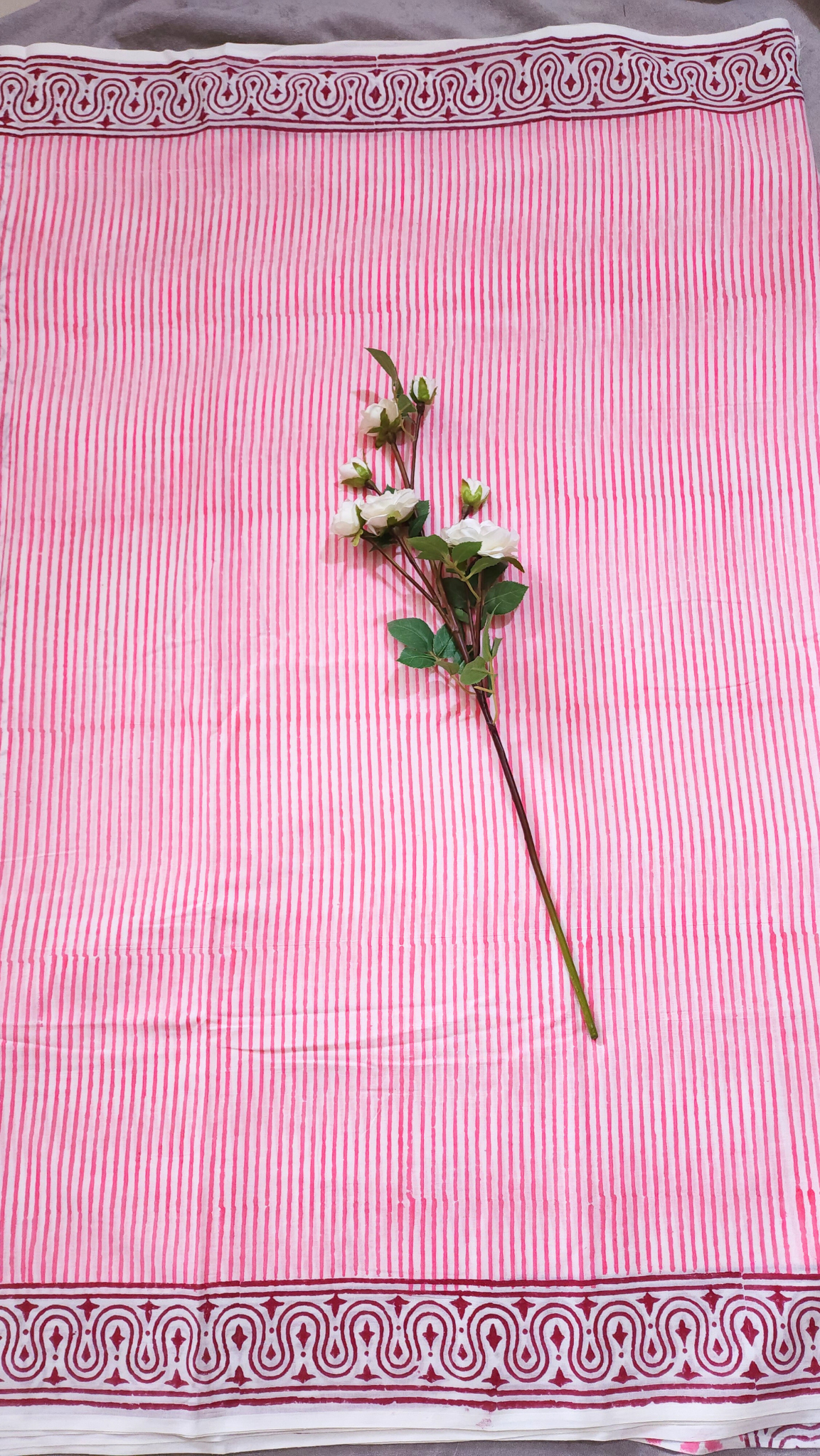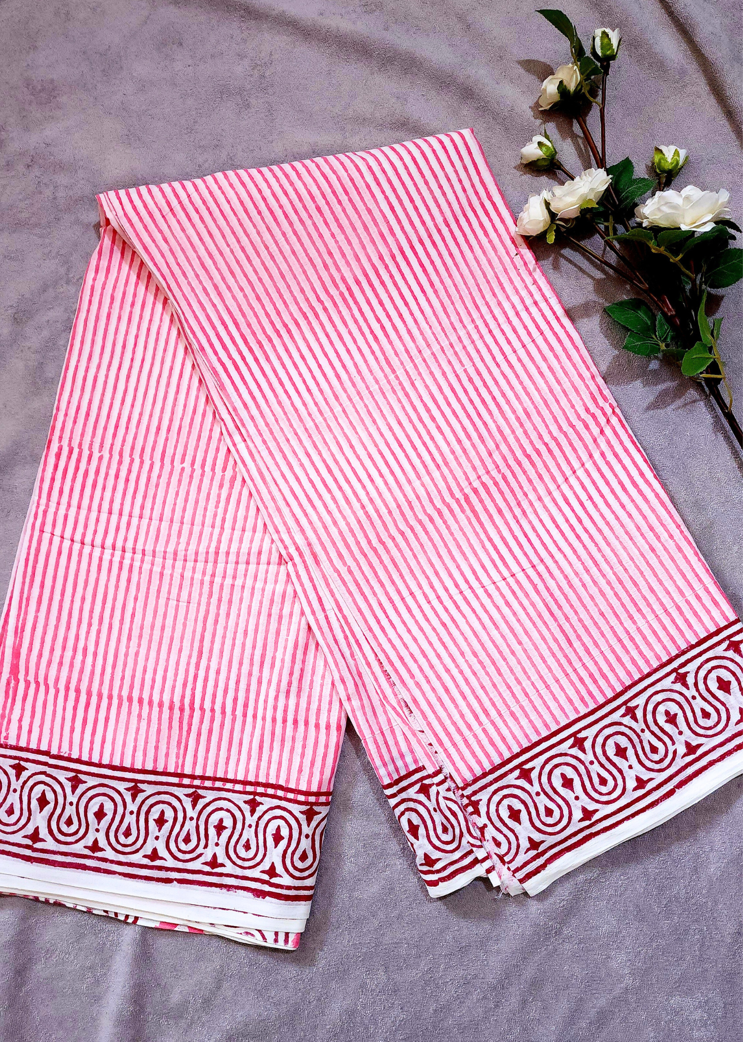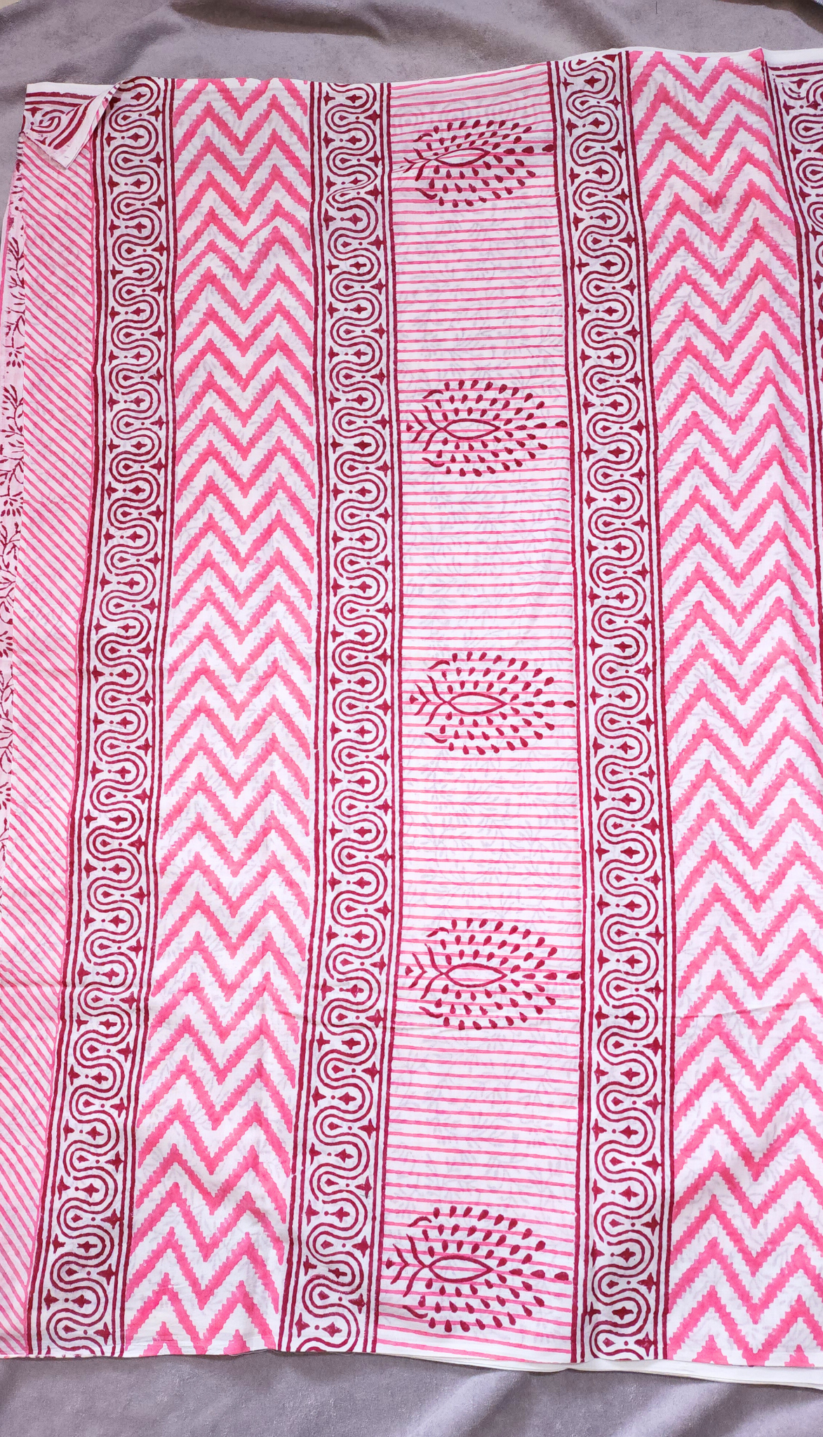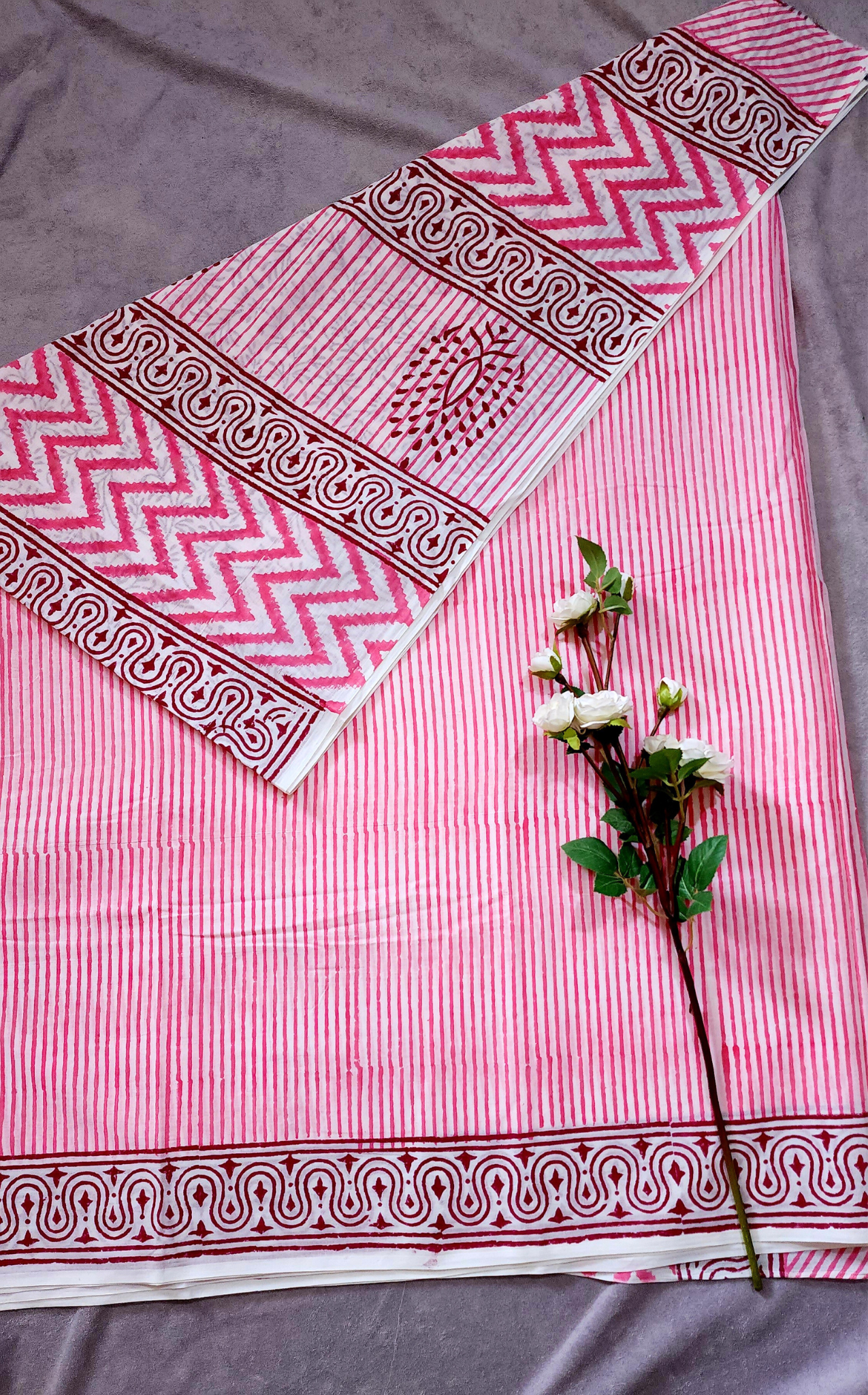 Pink | Mul Mul Cotton Bagru Hand Block Printed Saree