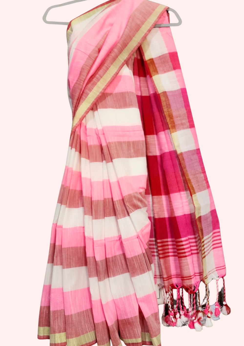 Pink & white | Cotton Saree