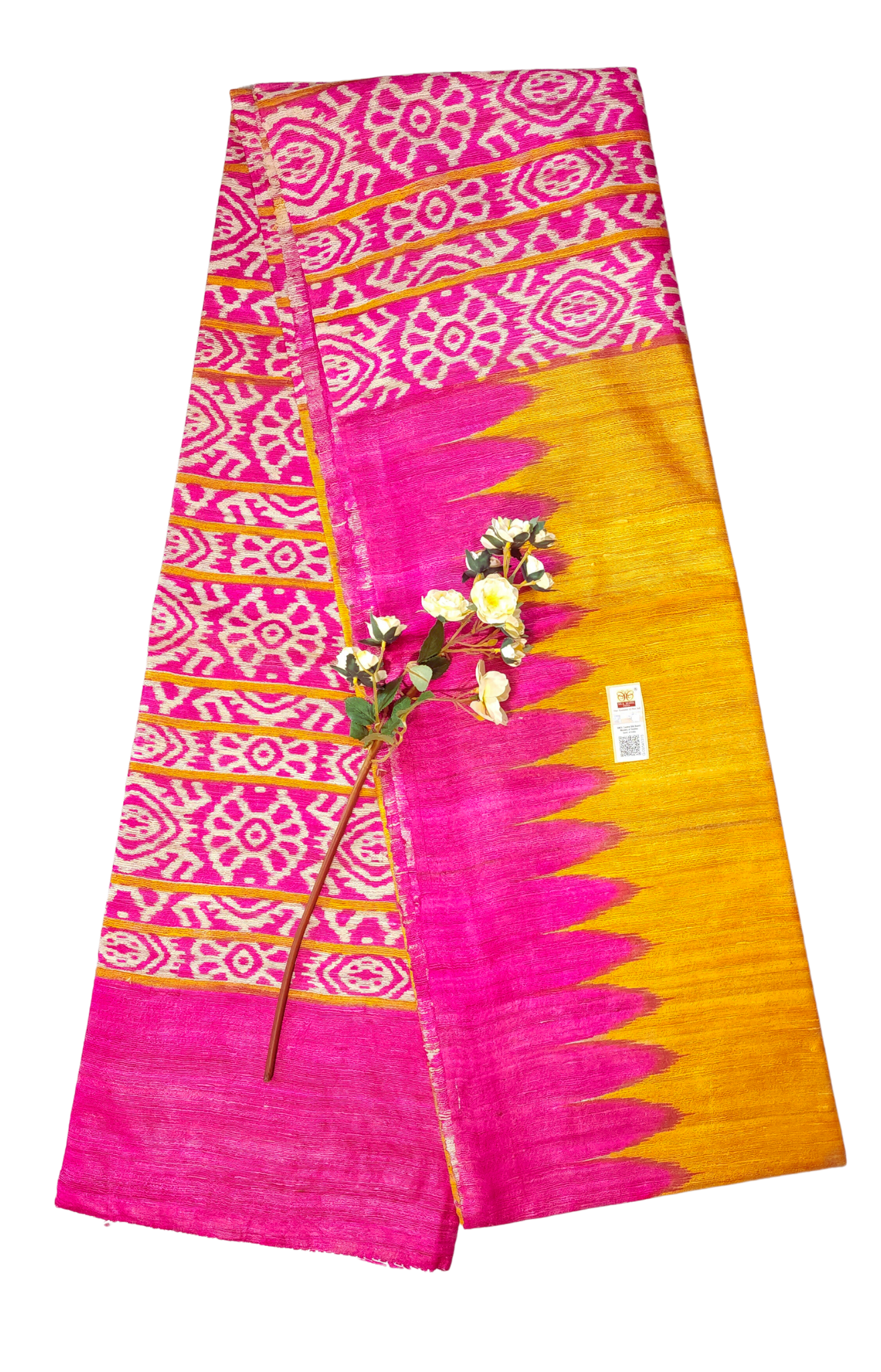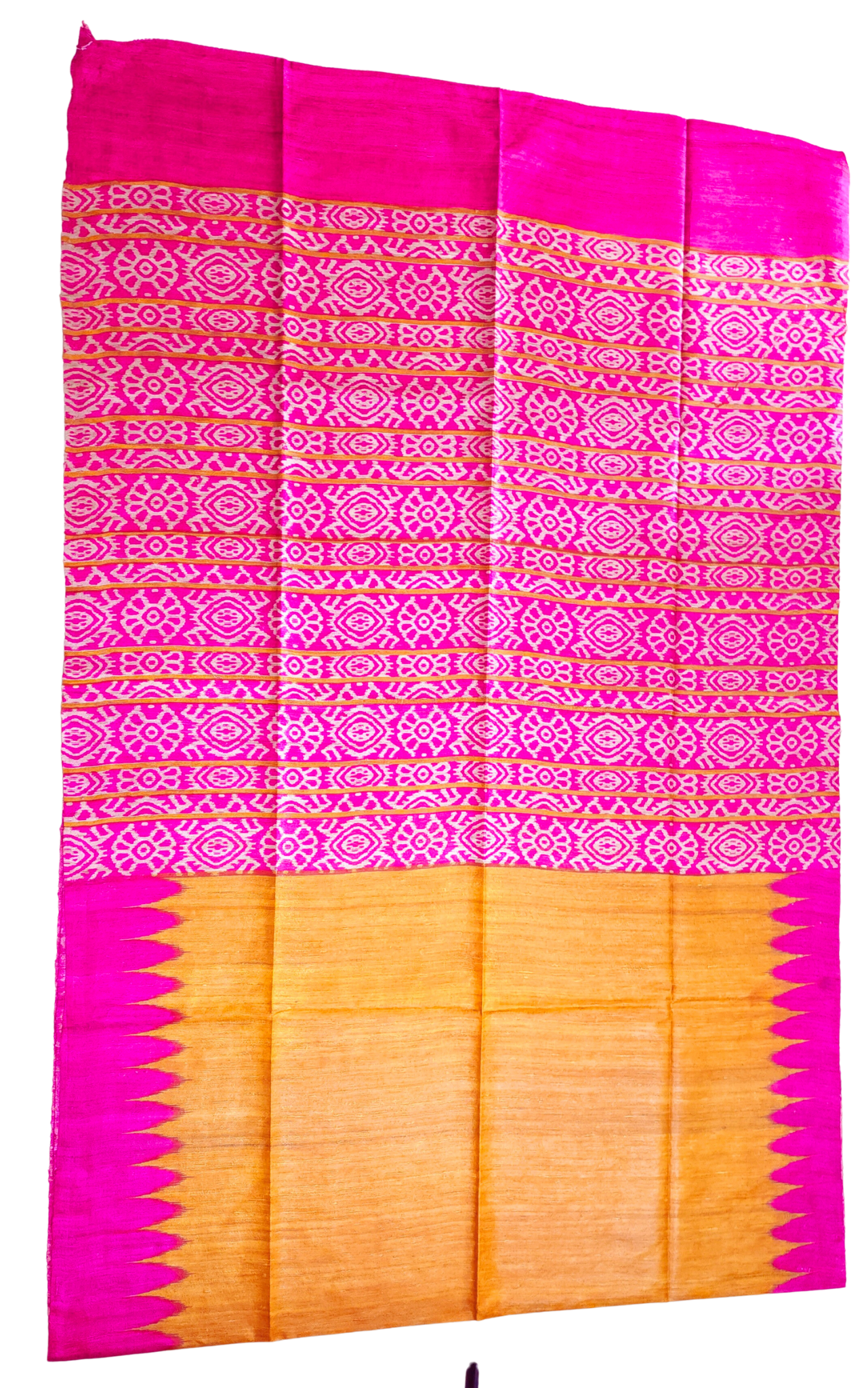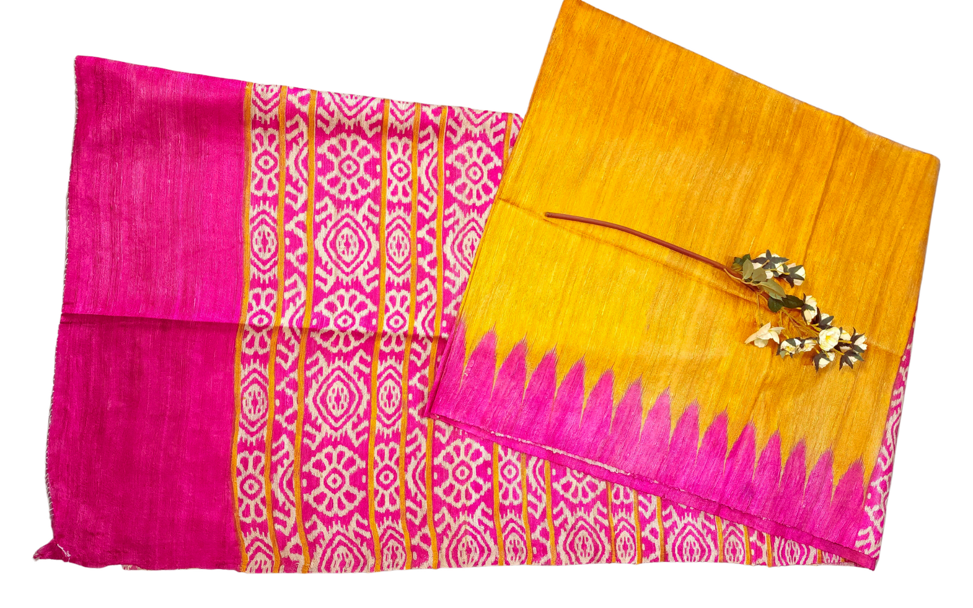 Pink & Yellow | Pure Tussar Ghicha Silk Sarees Printed Saree with Silk Mark