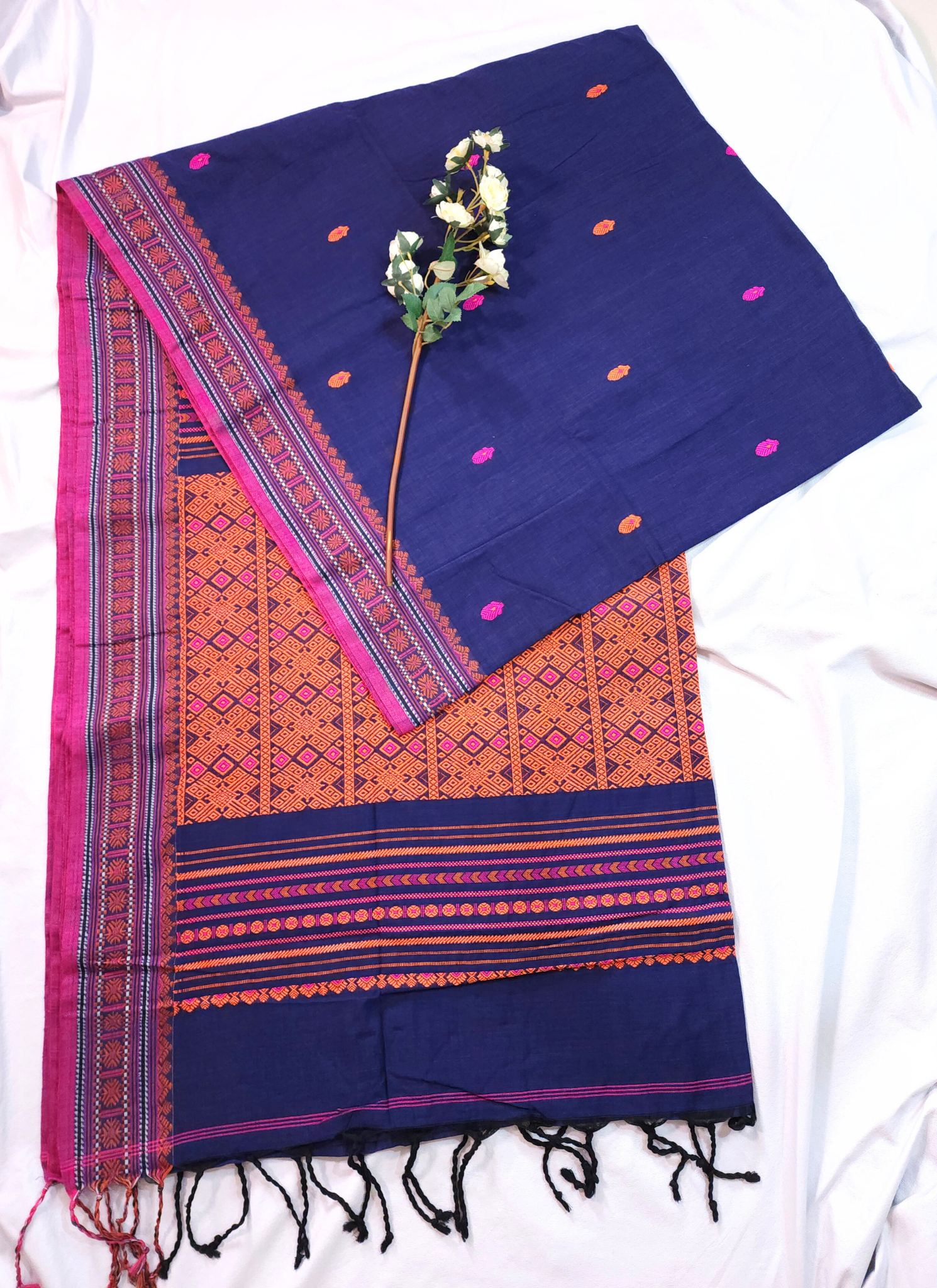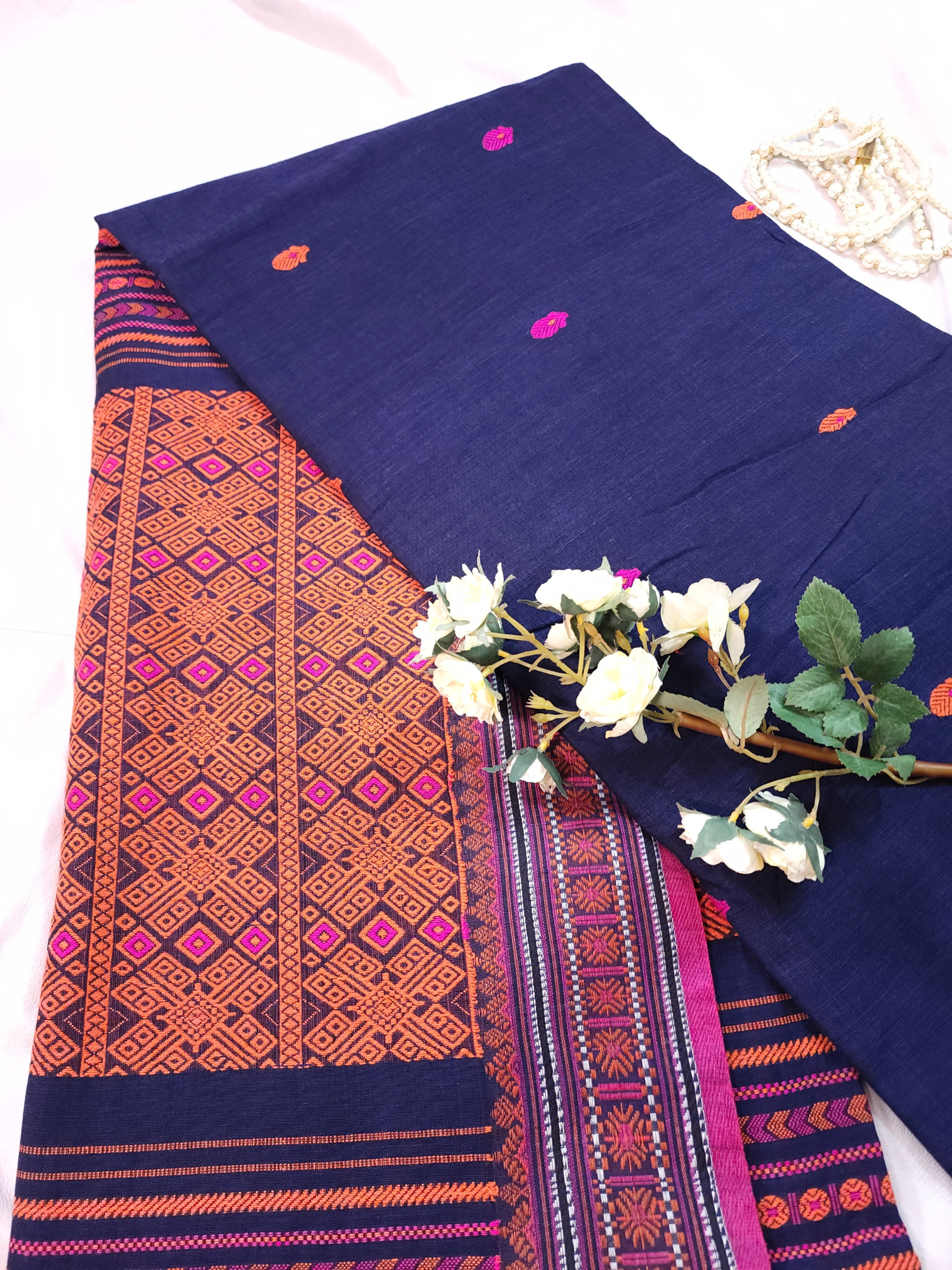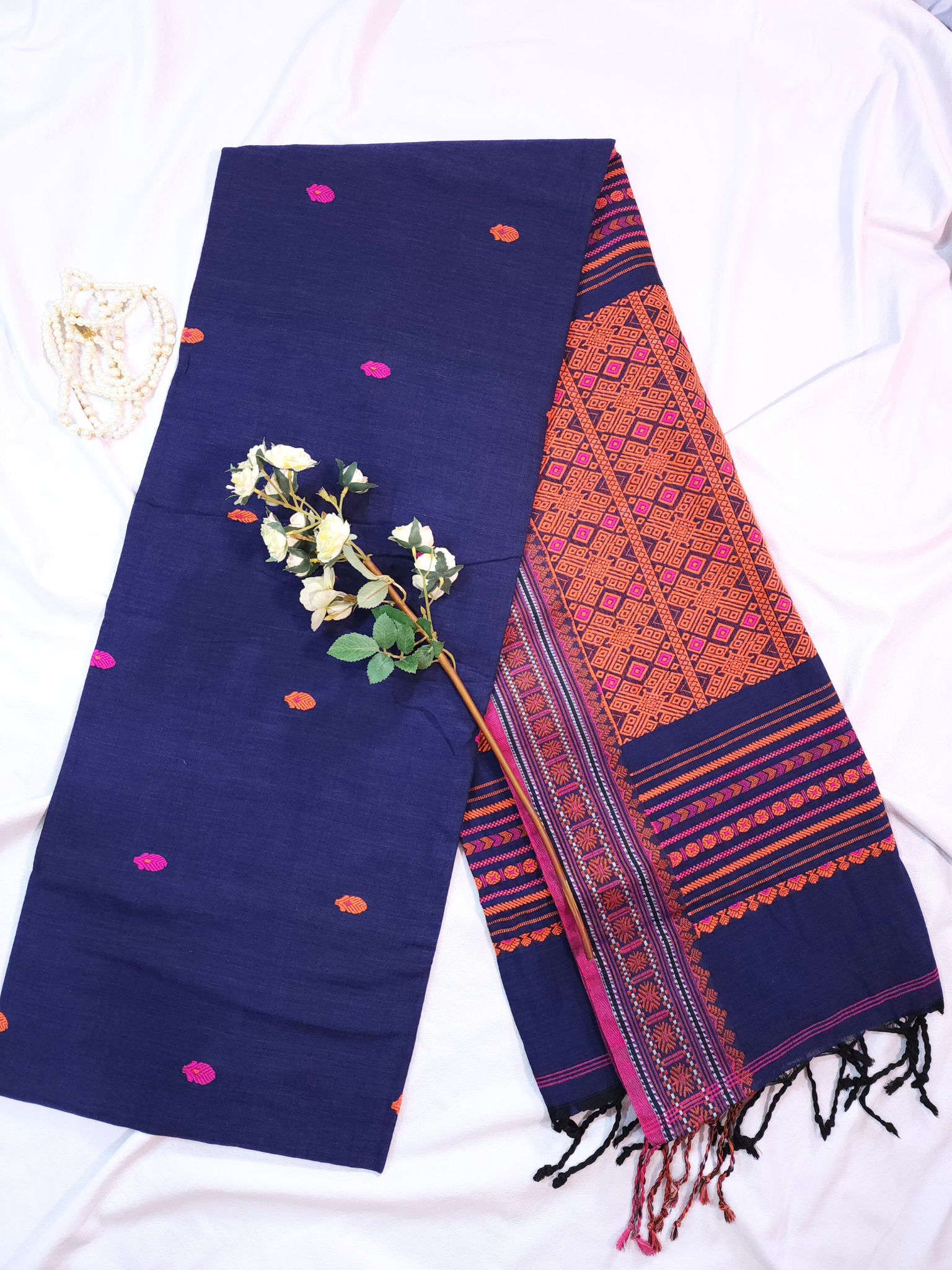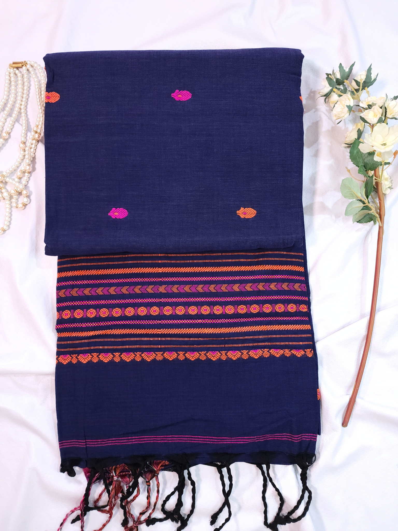 Royal Blue | Assam Cotton Handloom Saree with delicate embroidery