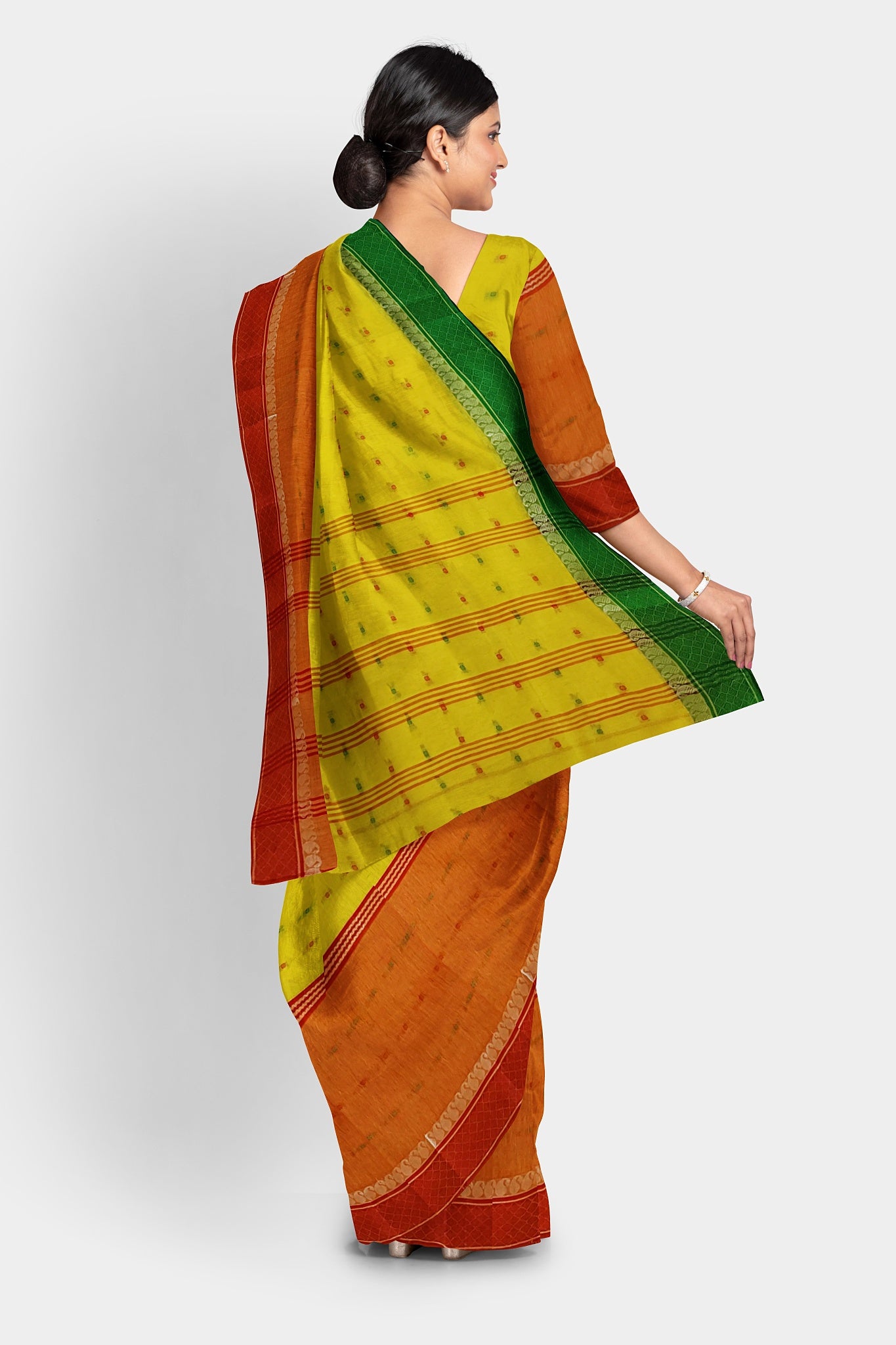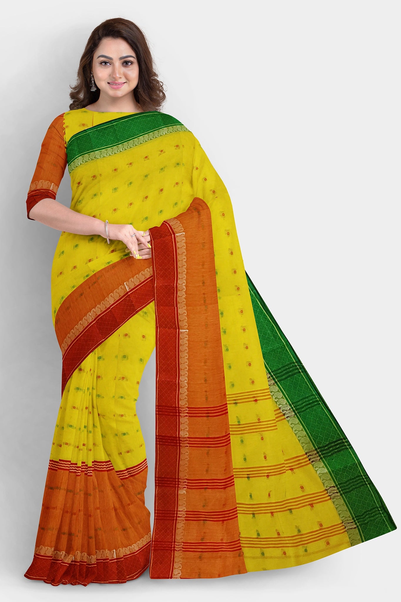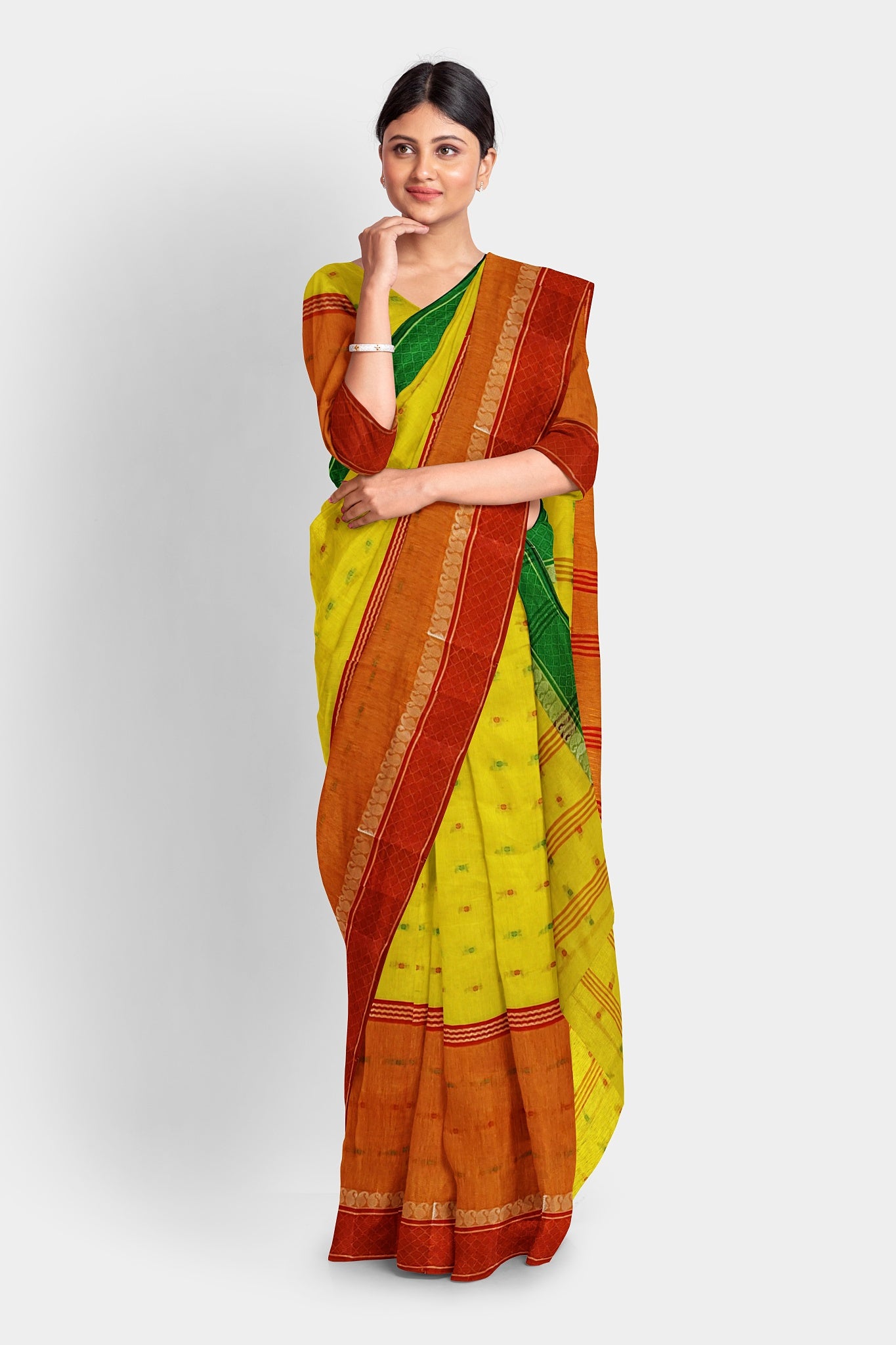 Embrace the rich heritage of Bengal with this exquisite Tant handloom saree, a blend of tradition and contemporary style. Whether it's a festive celebration or a special event, this saree is your symbol of grace and sophistication. Made from the finest cotton, it offers unmatched comfort and breathability. The delicate motifs and intricate borders exude understated grace, making it a perfect choice for every occasion.