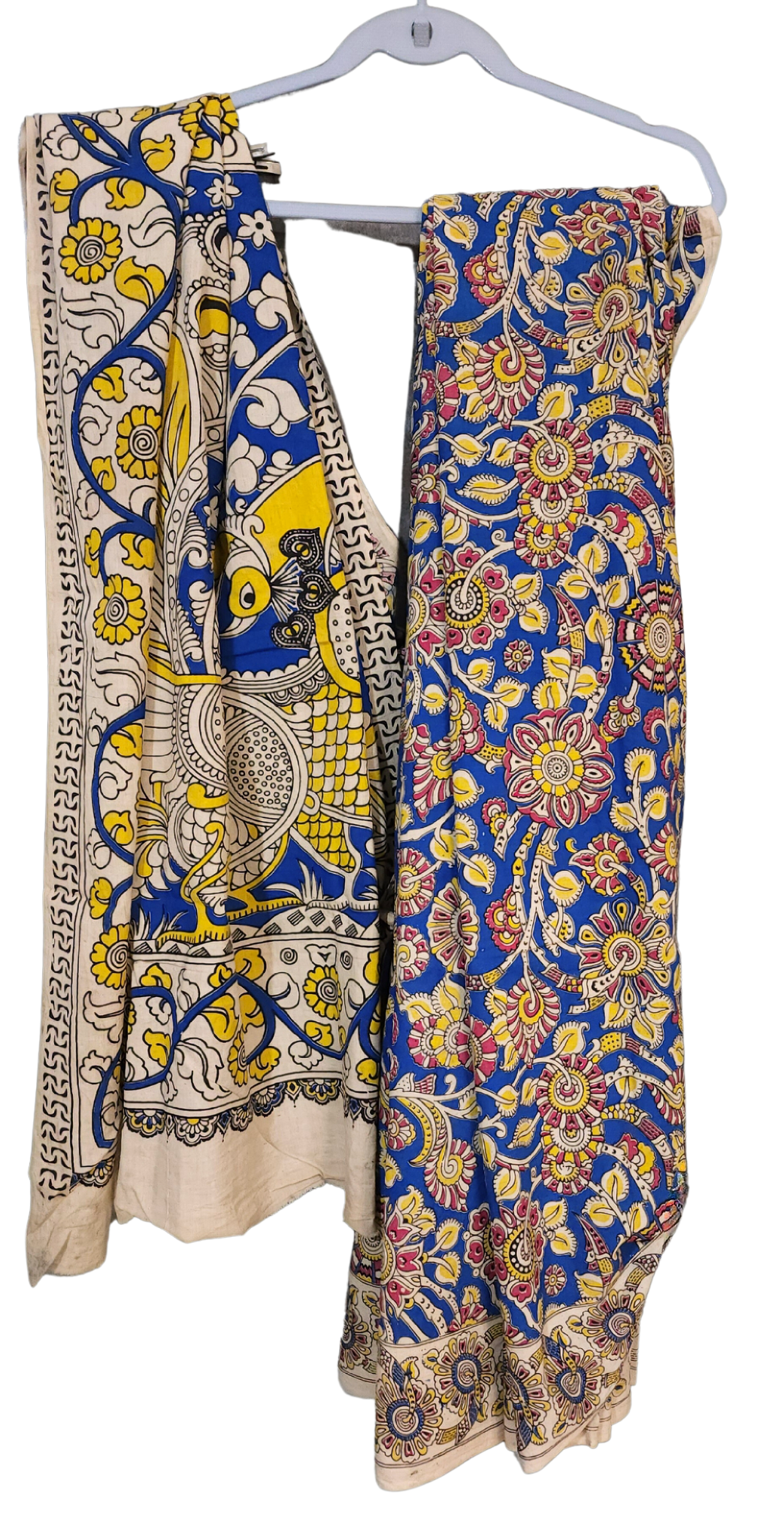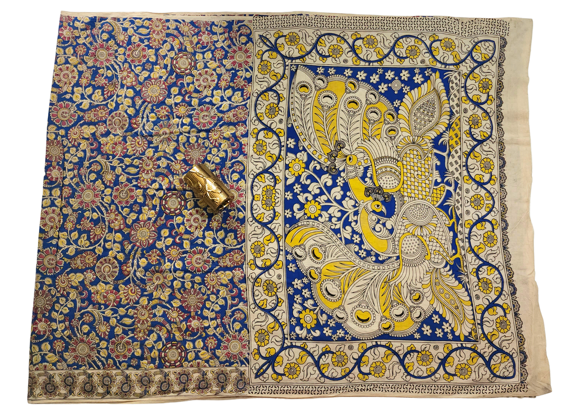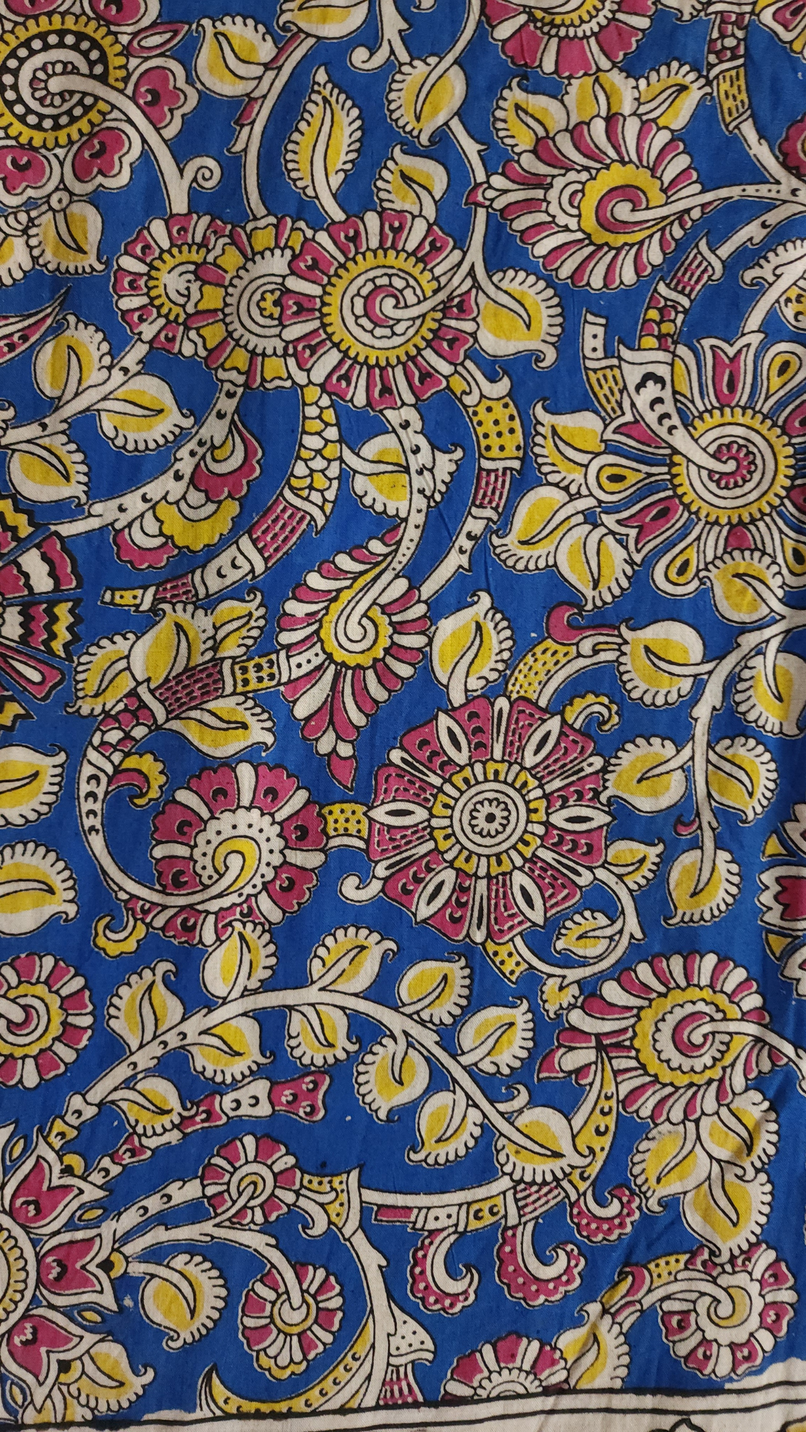 Yellow & Blue | Mul Mul Cotton Handmade Pedana Kalamkari Saree