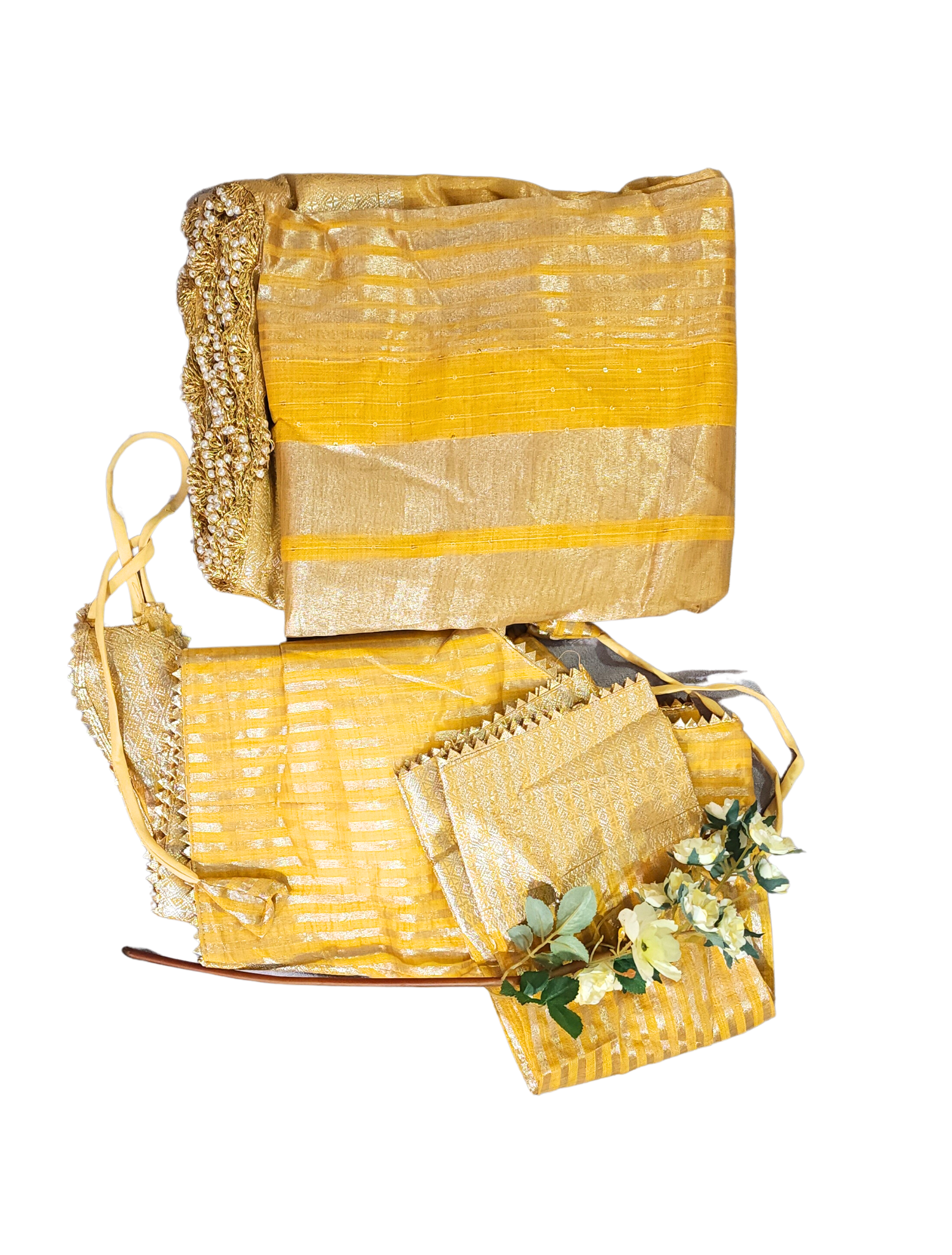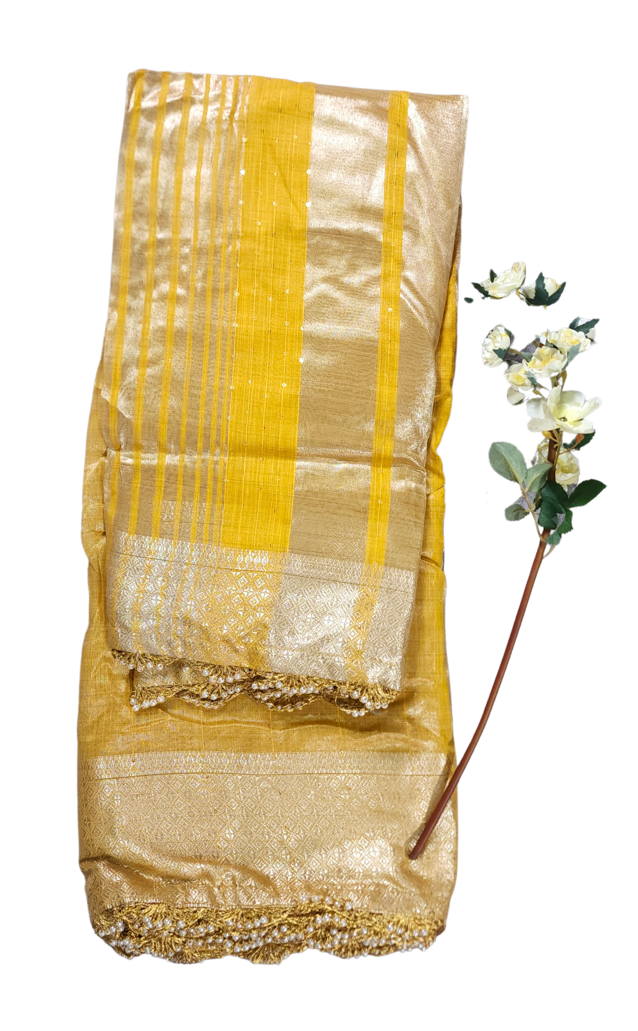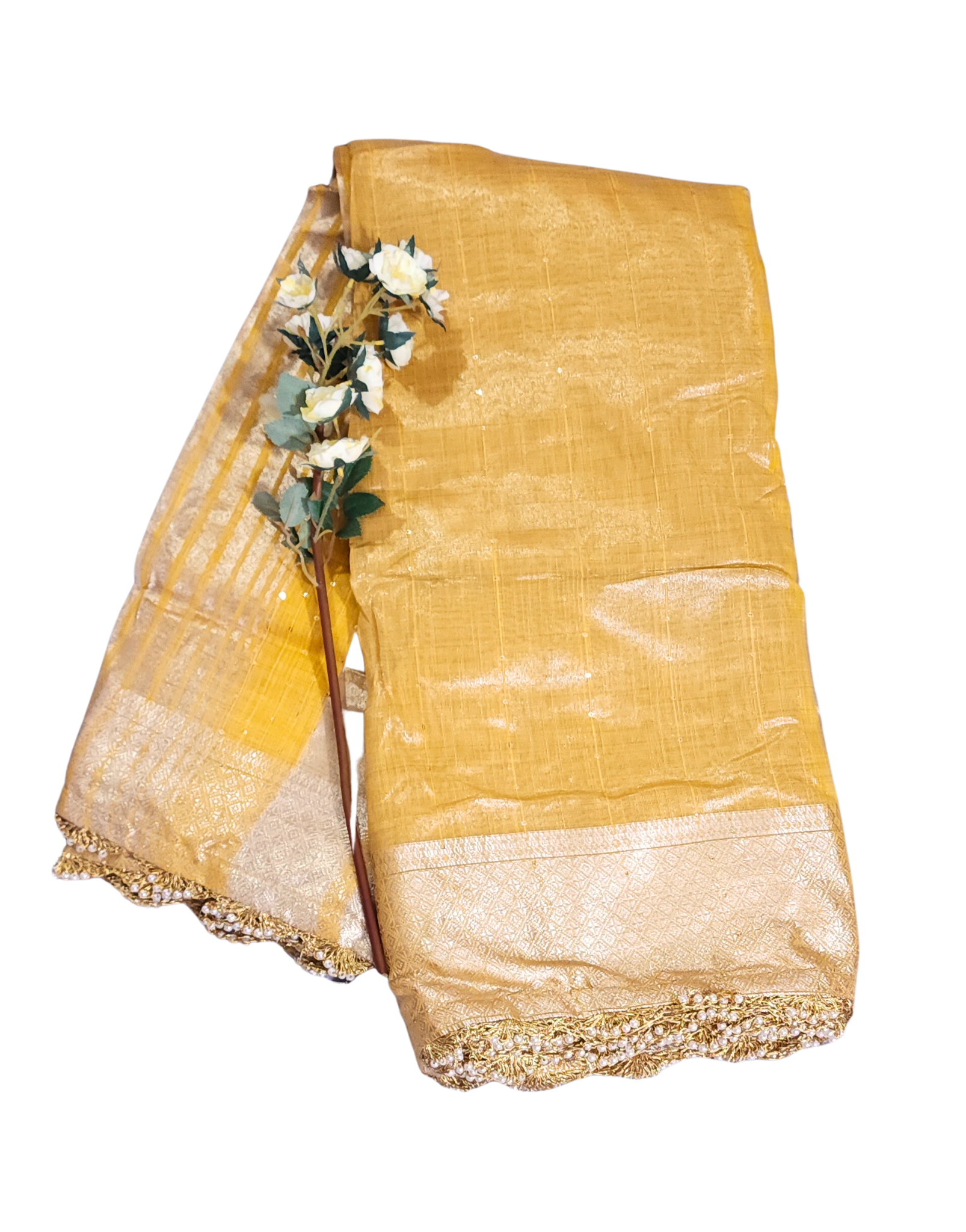 Yellow | Cotton Silk Saree with Pearl & Gold Zari Border